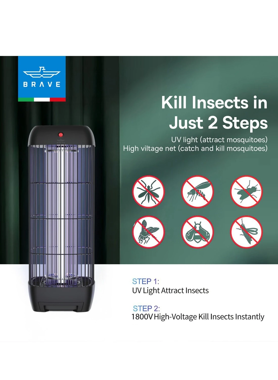 Brave 15W 1800V Electric Mosquito Killer Bug Zapper Indoor & Outdoor UV Lamp Insect Trap Safe & Chemical-Free Quiet & High-Efficiency Wide Coverage Easy to Clean