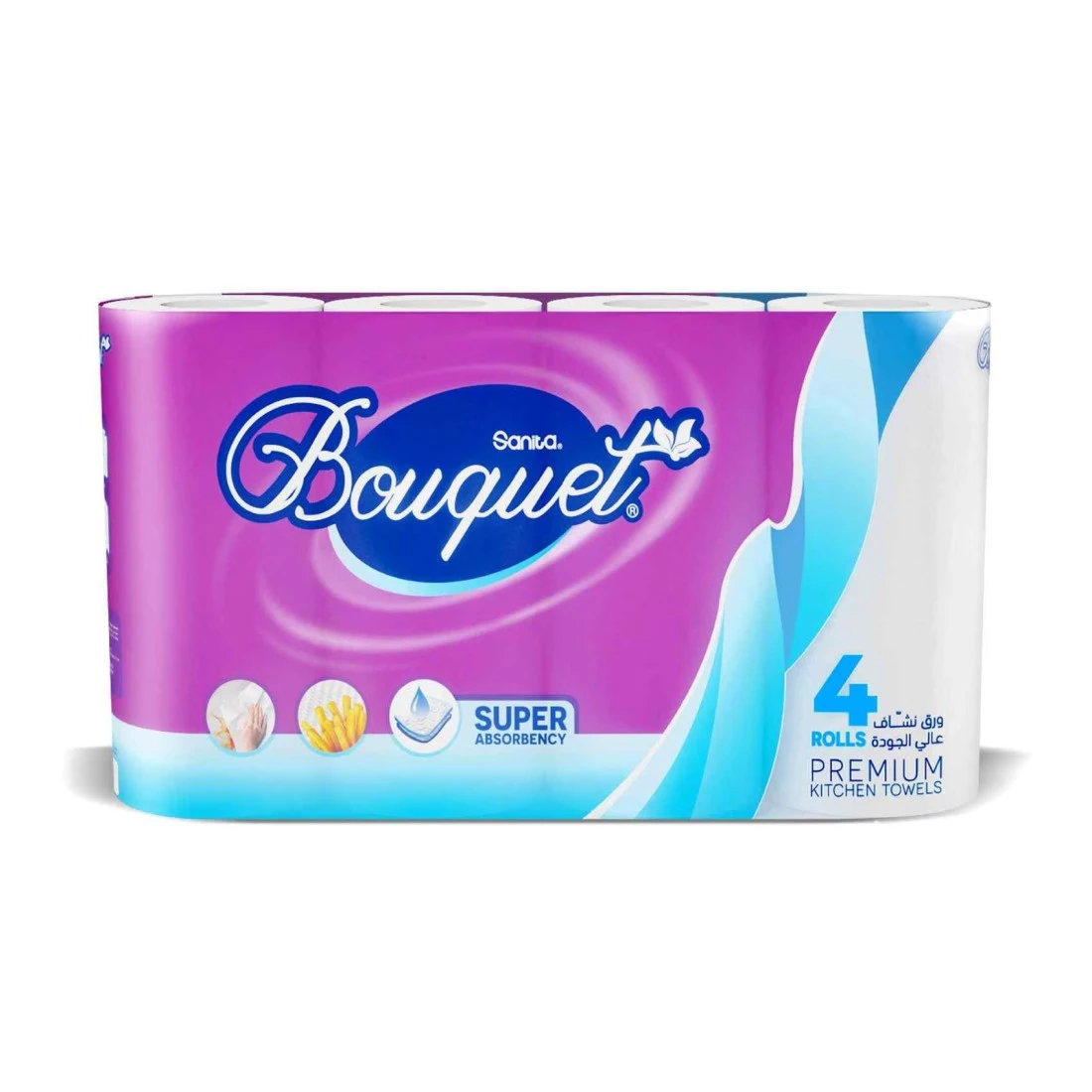 رولز مناشف المطبخ سانيتا بوكيه باللون الأبيض عبارة عن مجموعة مكونة من 4 لفات من مناشف المطبخ تحتوي كل منها على 54 ورقة. هذه المناشف مثالية لتنظيف الانسكابات والفوضى في المطبخ. إنها مصنوعة من ورق أبيض عالي الجودة يتميز بالامتصاص والمتانة. من السهل تمزيق اللفائف الفردية مما يجعلها مريحة في الاستخدام. تعتبر لفافات مناشف المطبخ هذه ضرورية لأي منزل