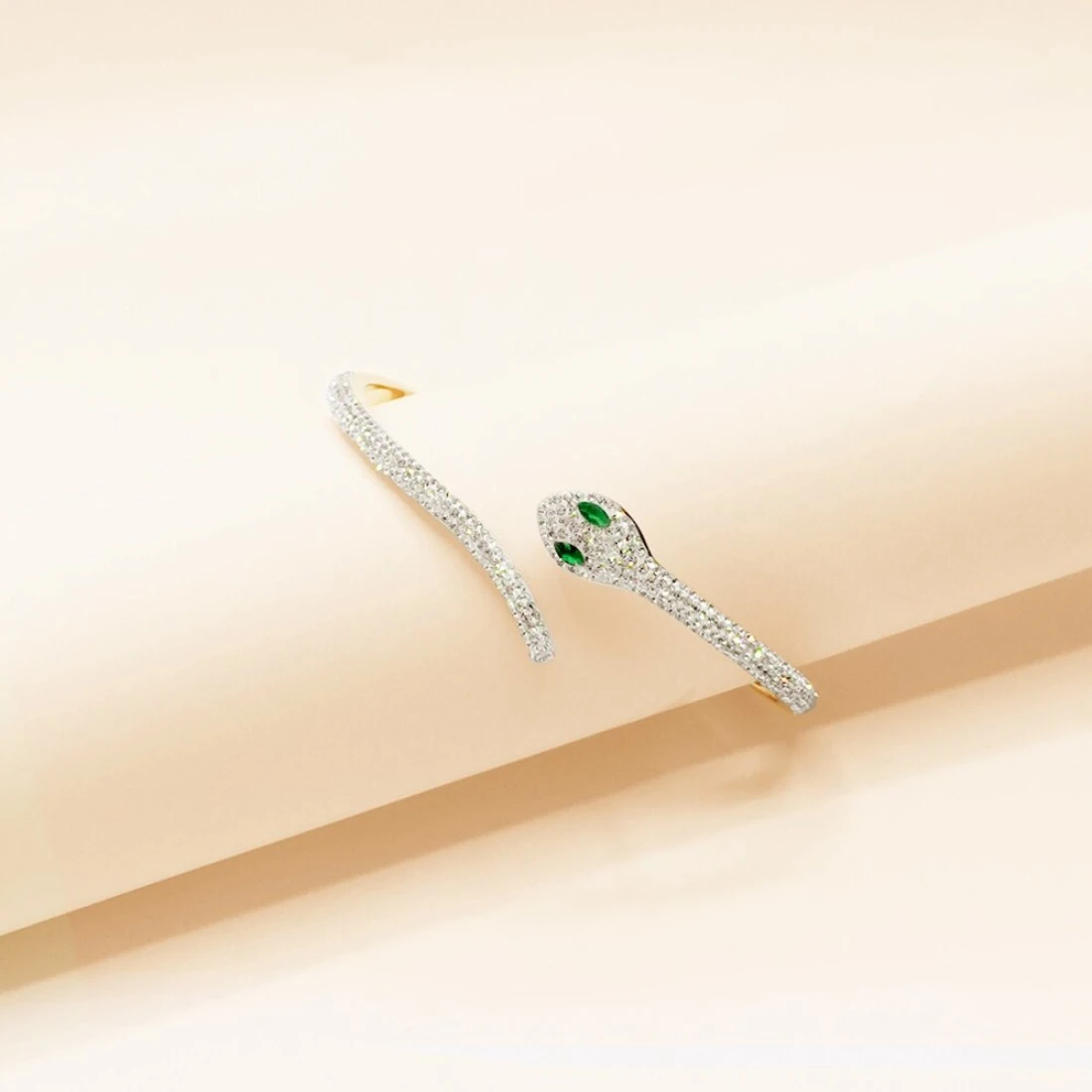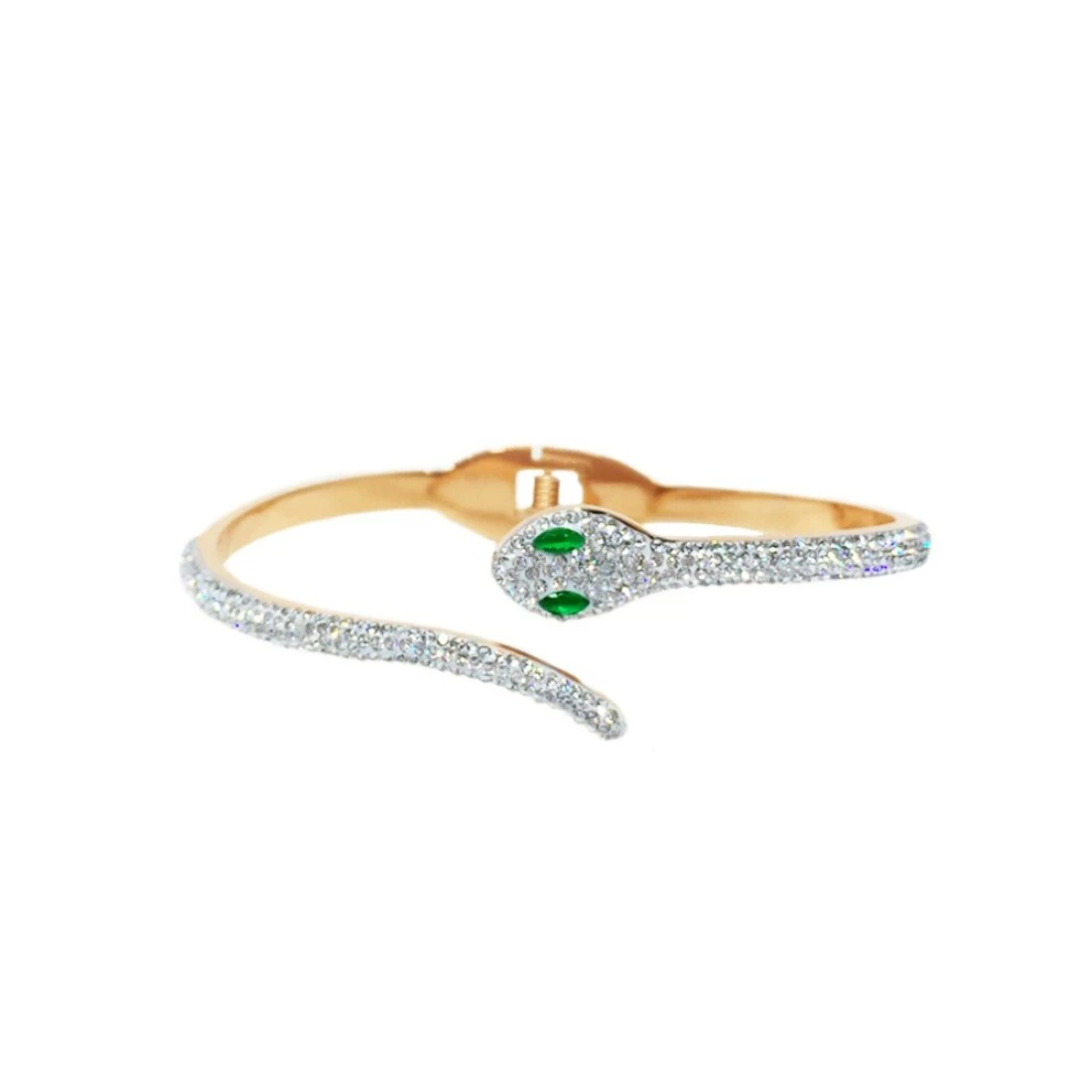 سوار عصري للنساء من JANNAH | سوار بتصميم ثعبان بعيون خضراء من أحجار الراين