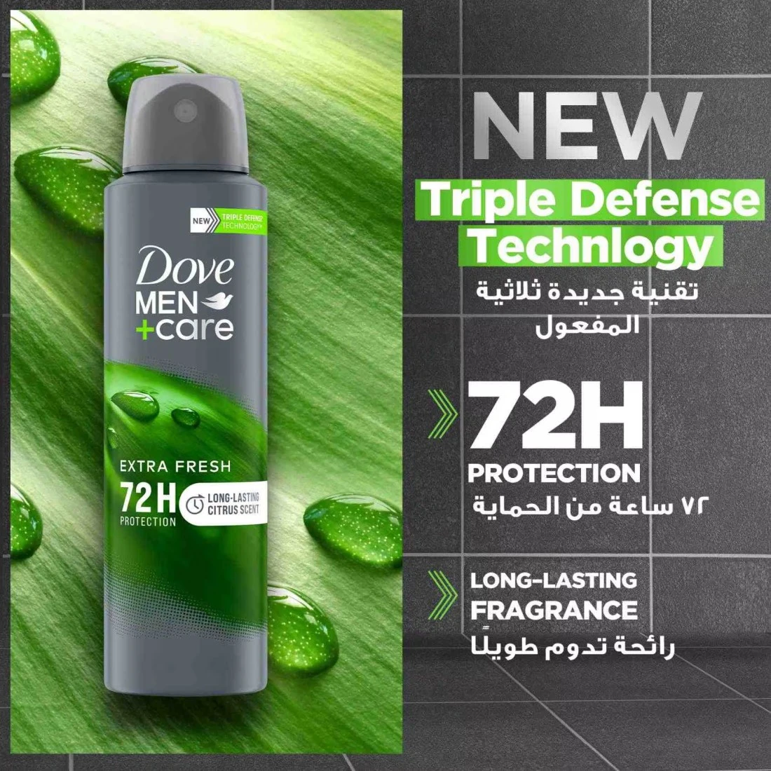 - 3 في 1 نضارة وحماية وعناية لبشرتك: جرب بخاخ مزيل العرق دوف للرجال+كير إكسترا فريش للحصول على ثقة طوال اليوم مع الحماية وبشرة مريحة.