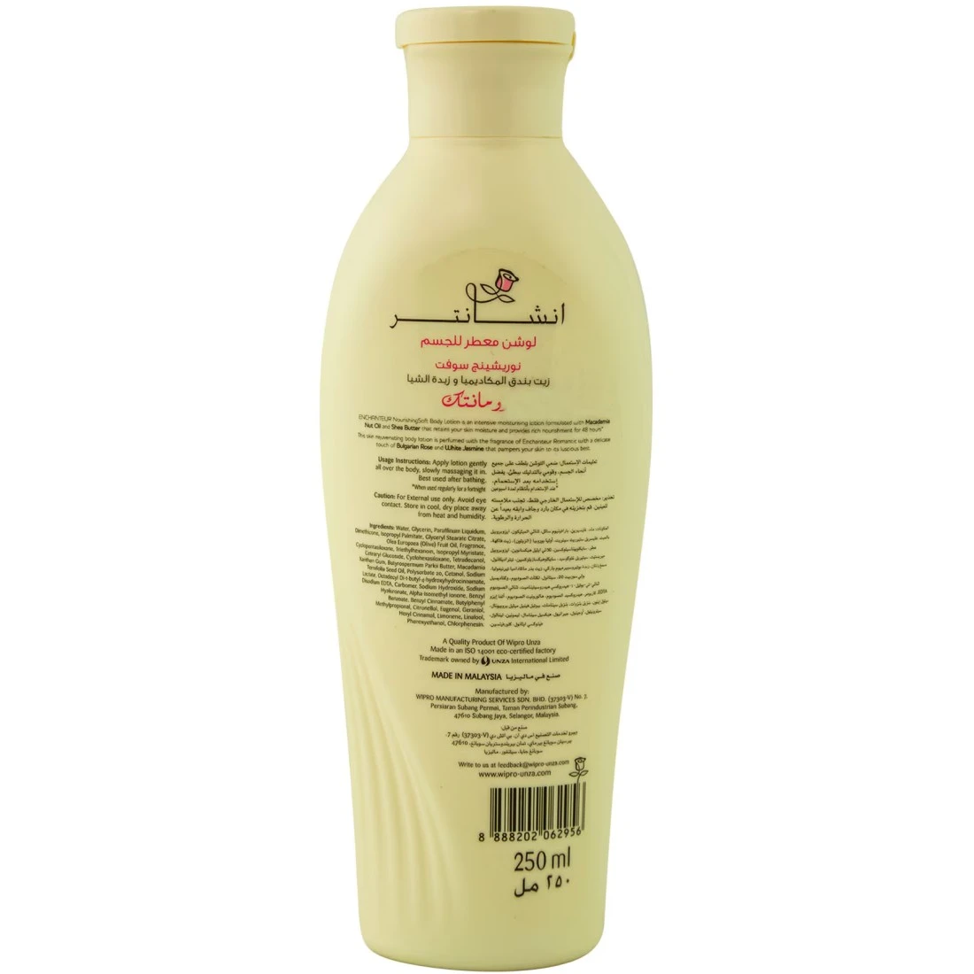 مرطب الجسم المعطر إنشانتر ساتان سموث رومانسي باللون الأبيض هو مرطب فاخر يترك بشرتك ناعمة وناعمة ومعطرة بشكل جميل. يتميز برائحة رومانسية تجمع بين نفحات الزهور مع لمسة من المسك، مما يخلق رائحة جذابة. هذا المرطب يحتوي على بروتينات حرير الساتان ومستخلصات زنبقة بيضاء تساعد على ترطيب وتغذية البشرة، مما يتركها مرطبة ومنتعشة. الصيغة خفيفة الوزن تمتص بسرعة ولا تترك أي بقايا دهنية، مما يجعله مثاليًا للاستخدام اليومي. انغمسي في الرفاهية مع هذا المرطب الغني واستمتع بالرائحة الساحرة التي يتركها في جسمك.