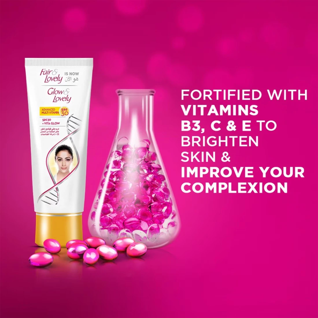 كلما خرجنا في الشمس نقلق من أن تسلبنا الشمس إشراقتنا. ولكن الآن، يمكنك الحصول على إشراقة عالية الجودة حتى تحت أشعة الشمس مع كريم "جلو آند لوفلي" للحماية من الشمس بعامل واقي SPF 30. هذا الكريم هو عبارة عن كريم 2 في 1 يمنحك إشراقة فورية وحماية من الشمس. يعمل كريم "جلو آند لوفلي" للحماية من الشمس مثل علاج تنعيم الوجه الذي يستخدم عادةً لعلاج التعرض للشمس. يستهدف التعرض للشمس عن طريق منع الجلد من التعرض للشمس والحد من التصبغ الزائد. للحصول على أفضل النتائج، ضعيه مرتين في اليوم خاصة قبل الخروج في الشمس. هذا المنتج مختبر من قبل أطباء الجلد. ما عليك سوى وضع نقط من الكريم على الوجه والأجزاء الأخرى المكشوفة من جسمك وتدليكه بلطف. يحتوي على مزيج من المكونات المغذية مثل الفيتامينات المتعددة بما في ذلك فيتامين B3 وC وE وB6 للحفاظ على إشراقة وإشراق بشرتك. لم يعد عليك الاختباء أو تغطية وجهك لحماية إشراقتك. يمكنك الآن الخروج في الشمس دون القلق بشأن تصبغ بشرتك أو أن تبدو مظلمة. ماذا تنتظرين؟ انطلقي واستمتعي بالشمس مع كريم "جلو آند لوفلي" متعدد الفيتامينات للوجه مع واقي SPF 30 + فيتا غلو لتمنحك بشرة مشرقة ونضرة! "جلو آند لوفلي" هي علامة تجارية رائدة في العناية بالبشرة تخدم ملايين الأشخاص حول العالم من خلال تقديم منتجات آمنة وفعالة وبأسعار معقولة توفر بشرة متوهجة ومتساوية اللون ومشرقة. كما أن جلو آند لوفلي هي أول كريم في العالم يستخدم فيتامين B3 (كريم النياسيناميد) الذي يعرف بتفتيح البشرة وتقليل الالتهابات وفرط التصبغ وتوحيد لون البشرة وتنعيم نسيج البشرة بشكل عام.