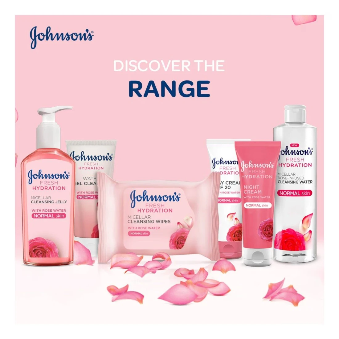 جيلي ميسيلار للتنظيف Fresh Hydration من جونسون يتميز بتركيبة مبتكرة تحتوي على ماء الورد الصافي. يزيل المكياج والشوائب اليومية بلطف، بينما يروي تعطش بشرتك بترطيبها المنعش.تم تركيب جيلي ميسيلار للتنظيف Fresh Hydration من جونسون بتقنية ميسيلار التي تجتذب الأوساخ والشوائب والمكياج، حتى الماسكارا المقاومة للماء، لينظف البشرة بشكل مثالي ويمنح بشرتك شعوراً بالنعومة ومظهراً ندياً كبتلات الورد. تم اختباره من قبل أطباء الجلد وهو مناسب للبشرة الحساسة.حافظي على نعومة بشرتك ونظافتها وجمالها وانتعاشها مع جيلي ميسيلار للتنظيف Fresh Hydration من جونسون!