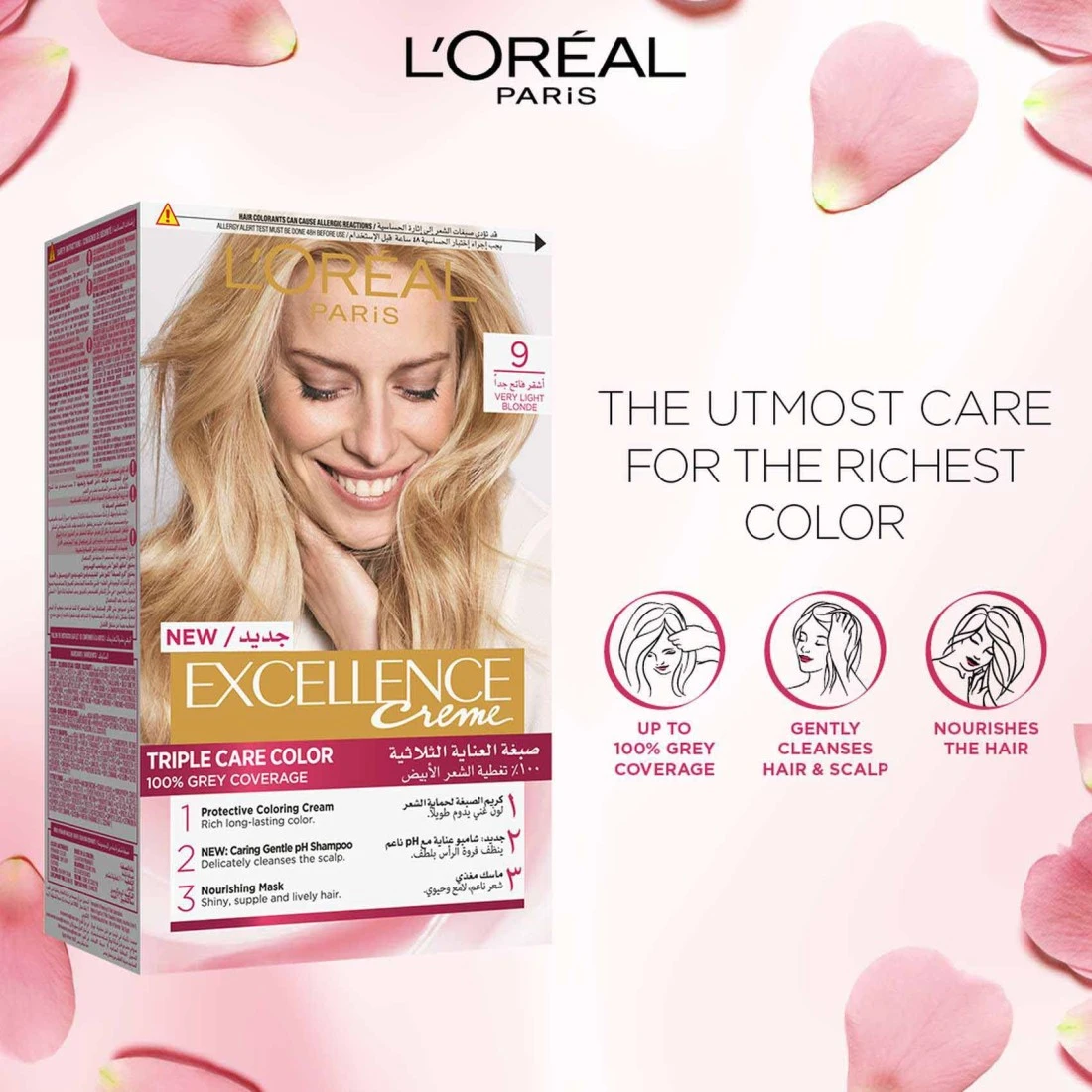 لوريال باريس إكسلنس كريم العناية الثلاثية لتلوين الشعر الدائم 9 - أشقر فاتح جدًا