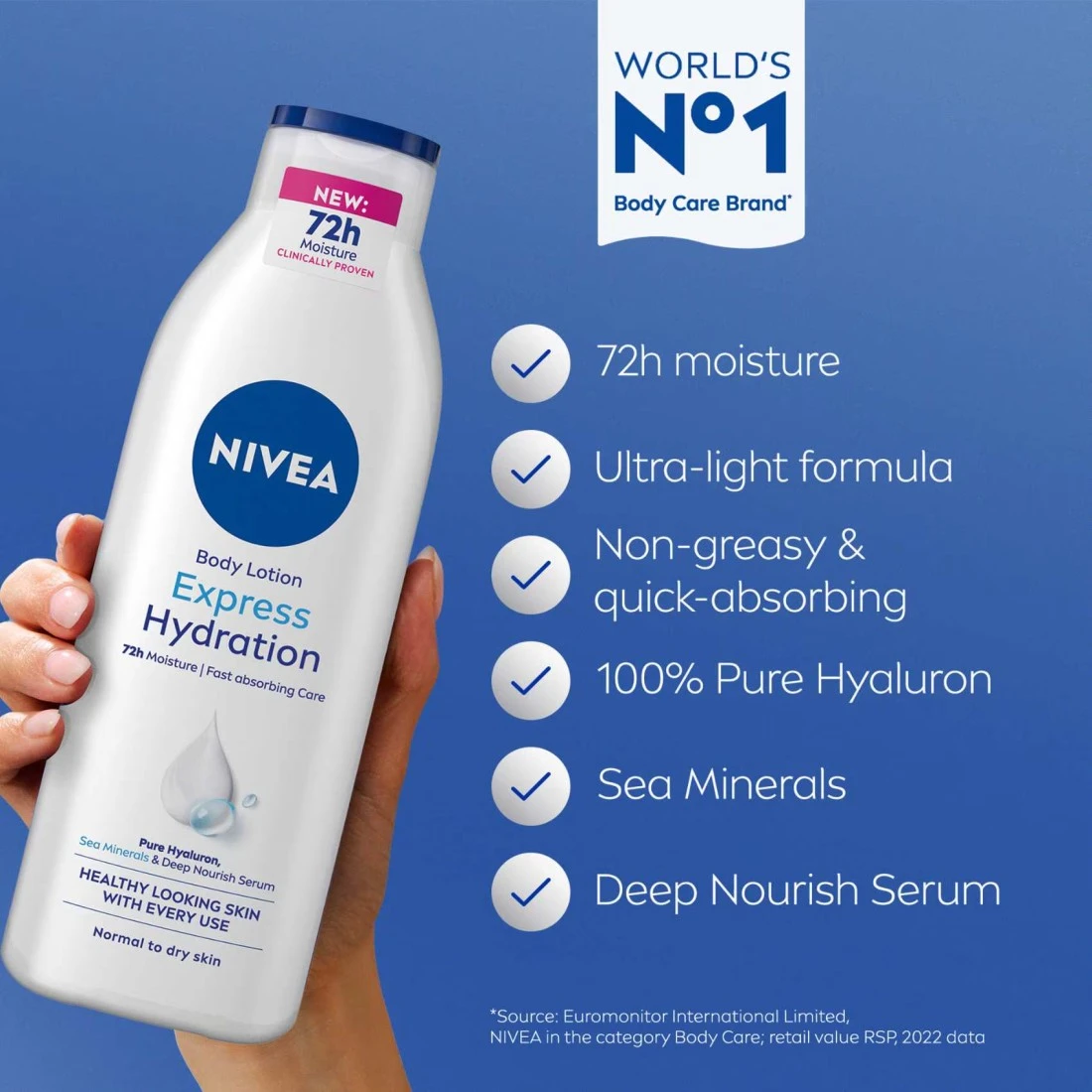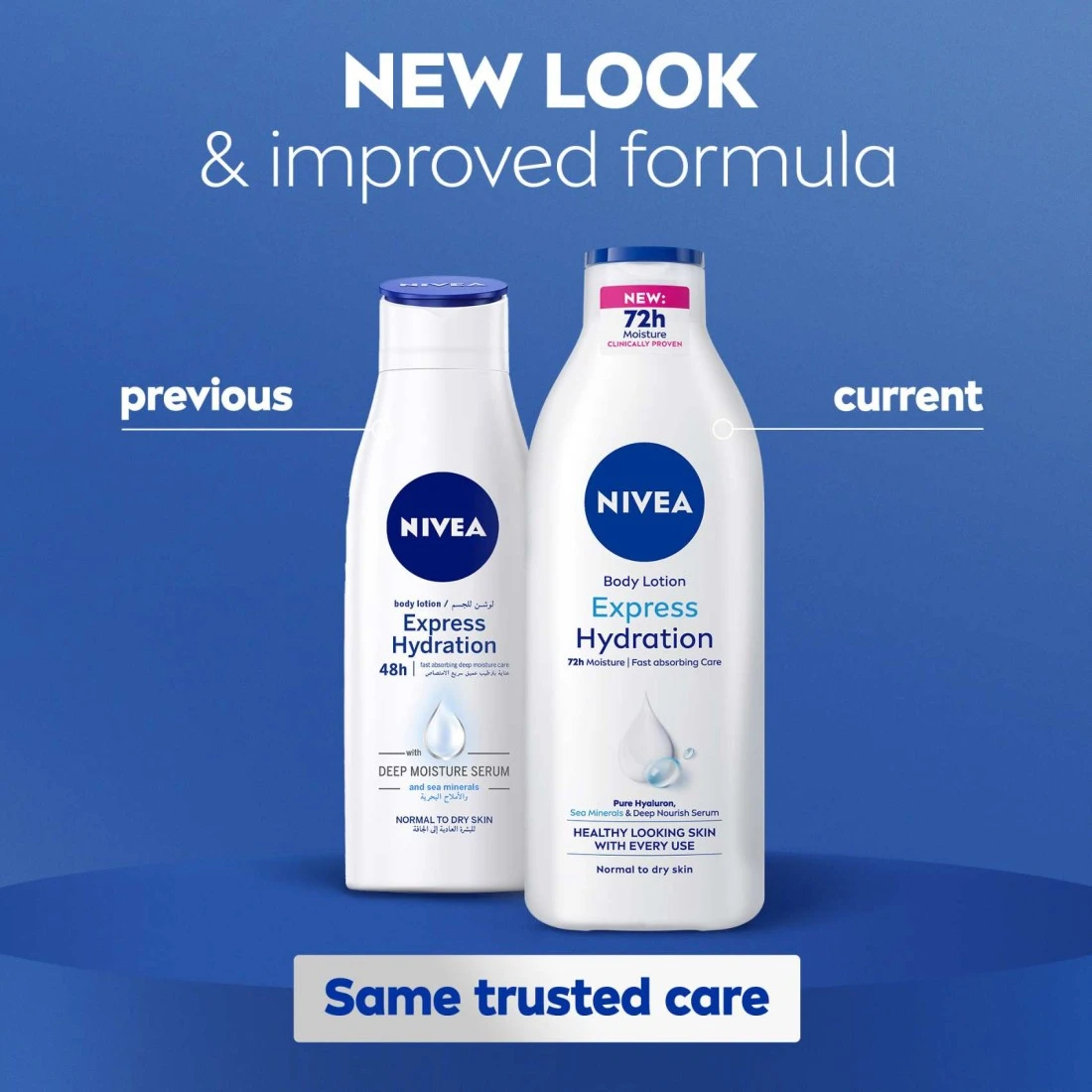 - لوشن الجسم نيفيا إكسبريس هايدريشن سريع الإمتصاص يمنحك الرطوبة التي تحتاجها فوراً للحصول على بشرة ناعمة ومرنة طويلة الأمد.
