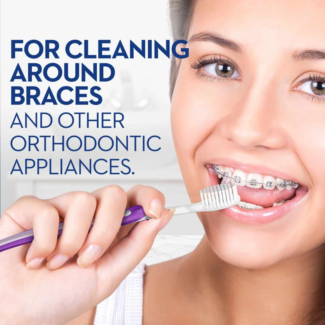 - شعيرات مقطعة بشكل "V" لتنظيف فعال حول الأقواس والأسلاك.