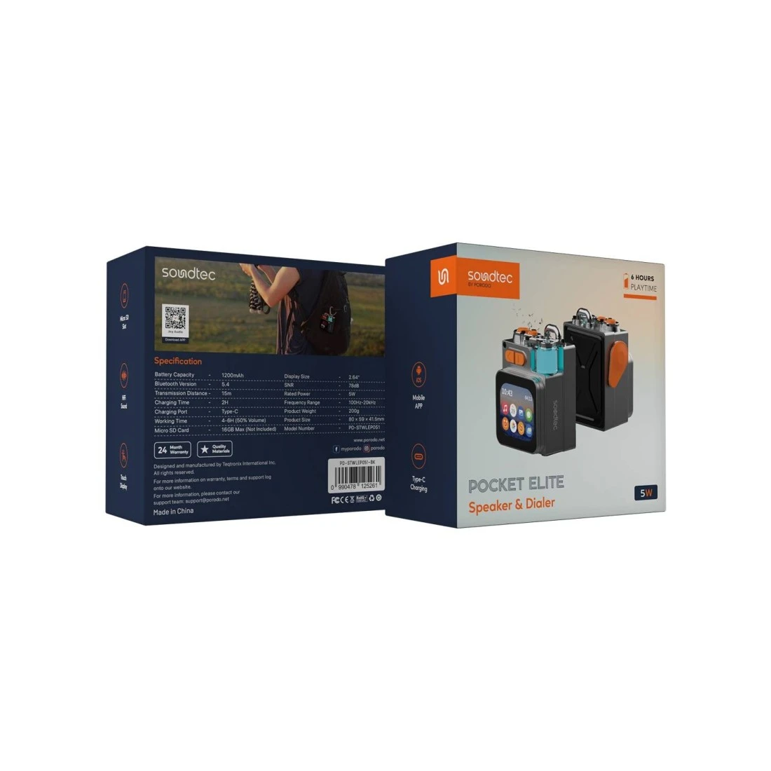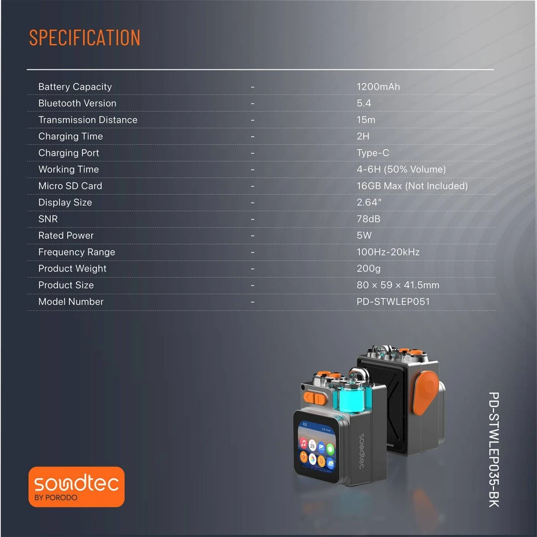 مكبر صوت وبايندر بورودو ساوندتك بوكت إليت، نطاق تردد 100Hz-20kHz، بطارية 1200mAh، قوة 5 وات، بلوتوث 5.4، شاشة تعمل باللمس 2.64"، شريحة Micro SD، صوت HiFi