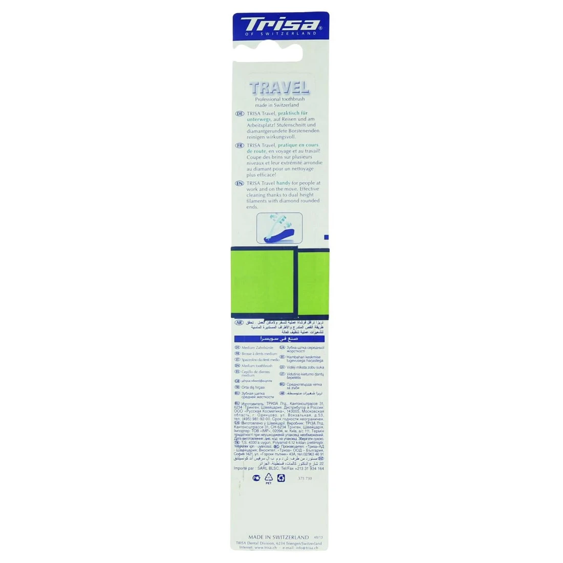 فرشاة أسنان تريزا إيزي ترافل متعددة الألوان هي فرشاة أسنان مريحة وصغيرة الحجم ومثالية للسفر. تتميز بتصميم متعدد الألوان مما يجعل من السهل التعرف والتمييز عن فرش الأسنان الأخرى. الحجم الصغير يجعل من السهل تعبئتها في حقيبة السفر أو حقيبتك مما يضمن لك الحفاظ على نظافة الفم الجيدة أثناء التنقل. تحتوي فرشاة الأسنان أيضا على شعيرات ناعمة توفر تجربة تنظيف لطيفة وفعالة. مع فرشاة أسنان تريزا سهلة السفر متعددة الألوان، يمكنك الحفاظ على أسنانك نظيفة وصحية بغض النظر عن مكان وجودك