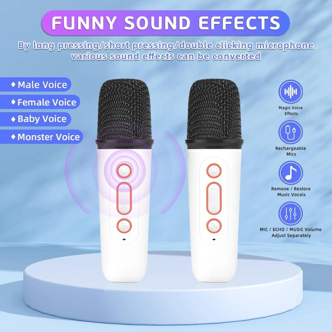 Dual Wireless Microphones: Perfect for duets and group singing, free from cable clutter.