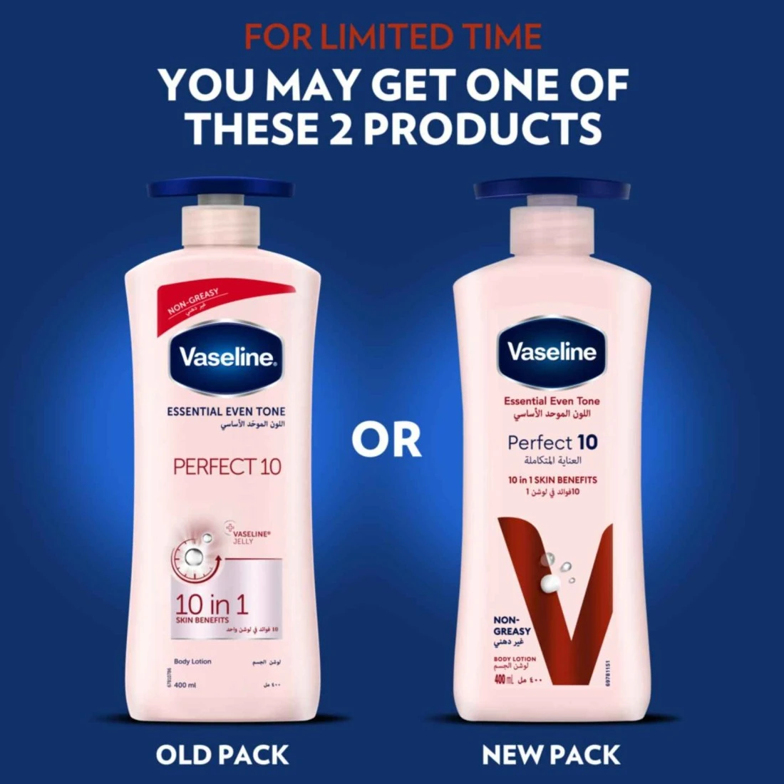 - أحصلي على 10 فوائد من لوشن ترطيب يومي واحد مع ڤازلين العناية المتكاملة اللون الموحد الأساسي.