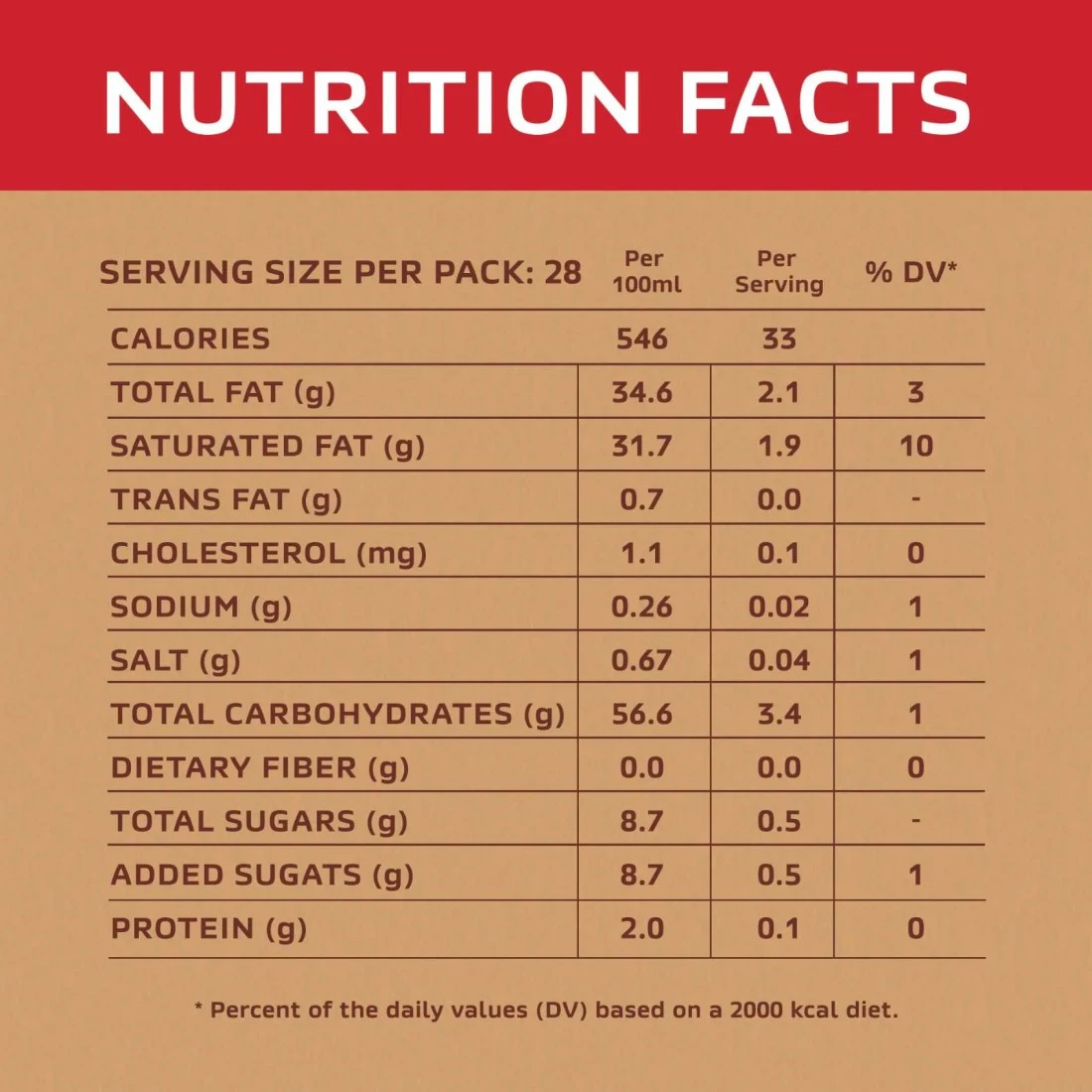 كريمة قهوة نستله كوفي-ميت الأصلية الخالية من منتجات الألبان خيارٌ شائعٌ لمن يفضلون خياراتٍ خالية من منتجات الألبان في قهوتهم. إنها مصنوعةٌ من مكوناتٍ عالية الجودة وتتميز بقوامٍ ناعمٍ وكريميٍّ يُعزز نكهة قهوتك. حجمها 170 غرامًا، وهي مثاليةٌ للاستخدام الشخصي أو أثناء التنقل. كريمة القهوة هذه سهلة الاستخدام، ما عليك سوى إضافة الكمية المطلوبة إلى قهوتك وحركها جيدًا حتى تمتزج. كما أنها متعددة الاستخدامات، حيث يمكن استخدامها في المشروبات الساخنة أو الباردة. سواءً كنت تفضل قهوةً سوداء قويةً أو لاتيهً حلوًا وكريميًا، فإن كريمة قهوة نستله كوفي-ميت الأصلية الخالية من منتجات الألبان إضافةٌ رائعةٌ إلى روتينك الصباحي. بفضل عبوتها العملية ومذاقها اللذيذ، تُعد كريمة قهوة نستله كوفي-ميت الأصلية الخالية من منتجات الألبان خيارًا لا غنى عنه لعشاق القهوة. تُضيف نكهةً غنيةً وكريميةً إلى قهوتك دون الحاجة إلى الحليب أو منتجات الألبان. بالإضافة إلى ذلك، فهي خاليةٌ من الكوليسترول واللاكتوز، مما يجعلها خيارًا رائعًا لمن لديهم قيودٌ غذائية. ابدأ يومك بفنجان قهوة مُحسّن بكريمة نستله كوفي-ميت الأصلية الخالية من منتجات الألبان. كريمة القهوة الأصلية الناعمة واللذيذة. استمتع بفنجان قهوة كريمي غني ولذيذ، يحتوي على 33 سعرة حرارية فقط، بحجم حصة واحدة (ملعقتان صغيرتان أو 6 غرامات). مثالية لأي وقت.