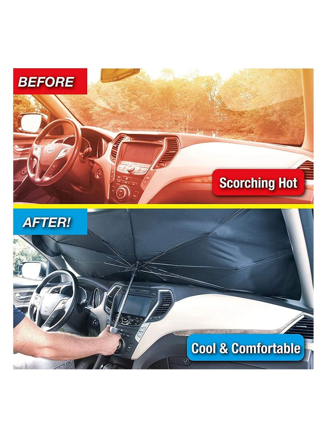 Protect Your Car's Interior: The Brella Shield reflects intense heat and harmful UV rays from the sun to help keep your car cooler and provide protection from fading and cracking upholstery and dashboards