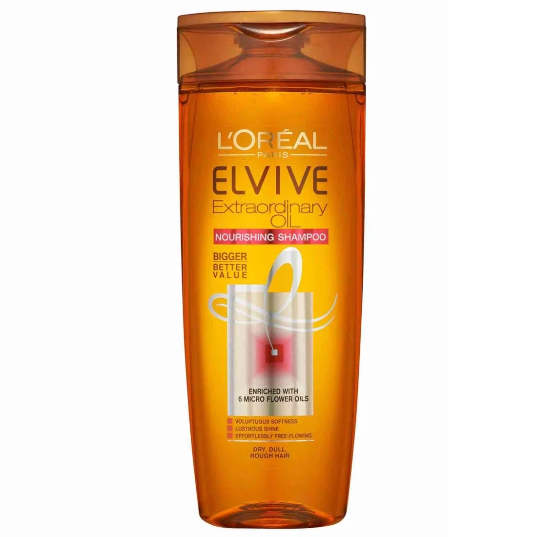 - يتم تحسين شامبو لوريال باريس ألفايف إكستراورديناري أويل بمستخلصات 6 زهرات زيتية لتغذية الشعر من فروة الرأس مباشرةً وهو مخصص للشعر الجاف إلى الشعر الجاف جدًا.