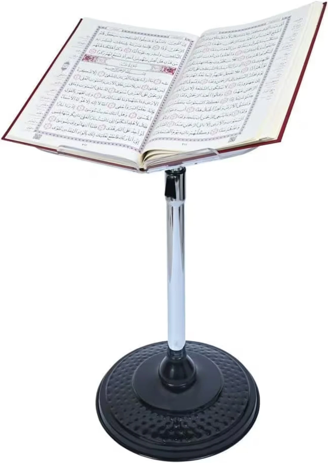 حامل قرآن خشبي ومعدني بارتفاع قابل للتعديل.