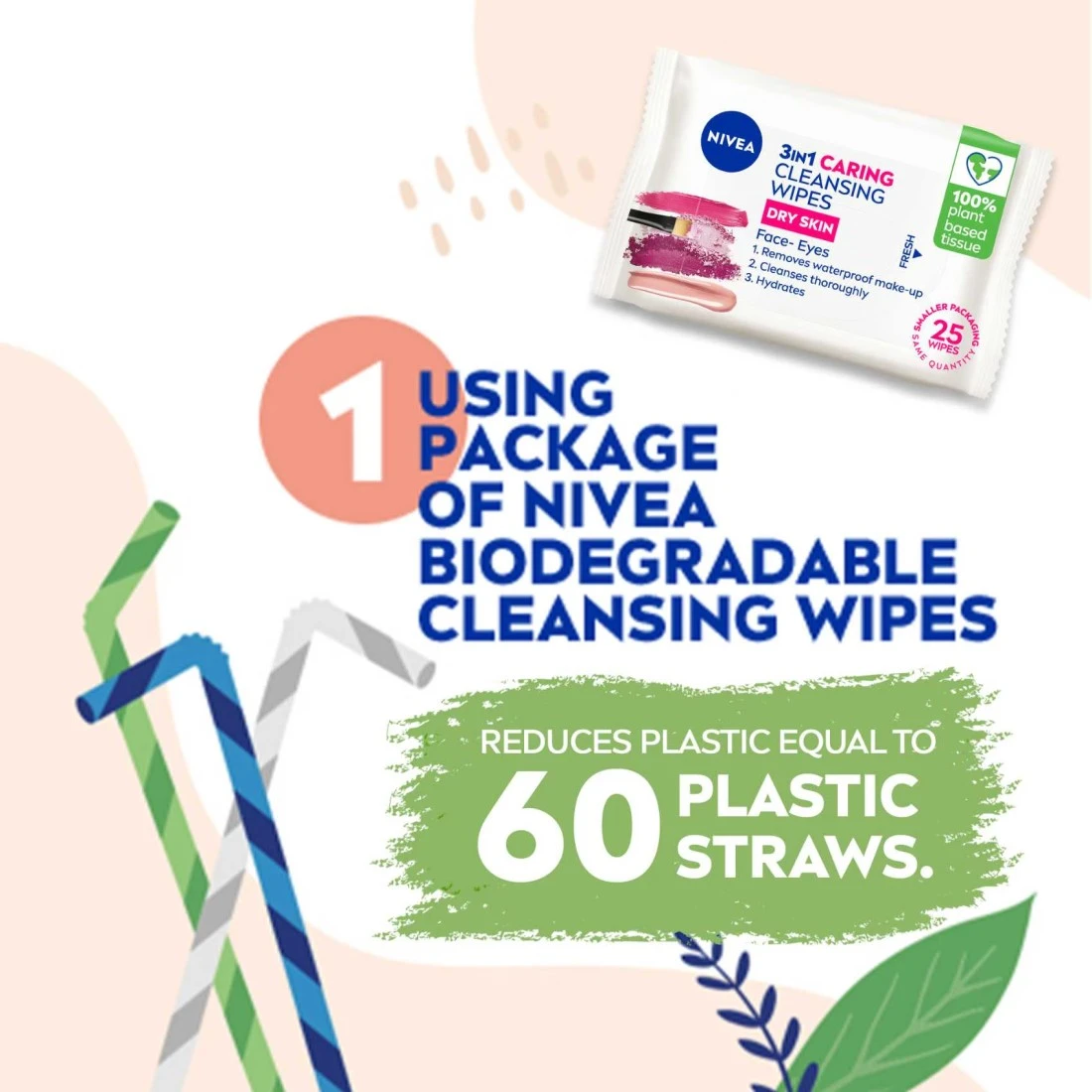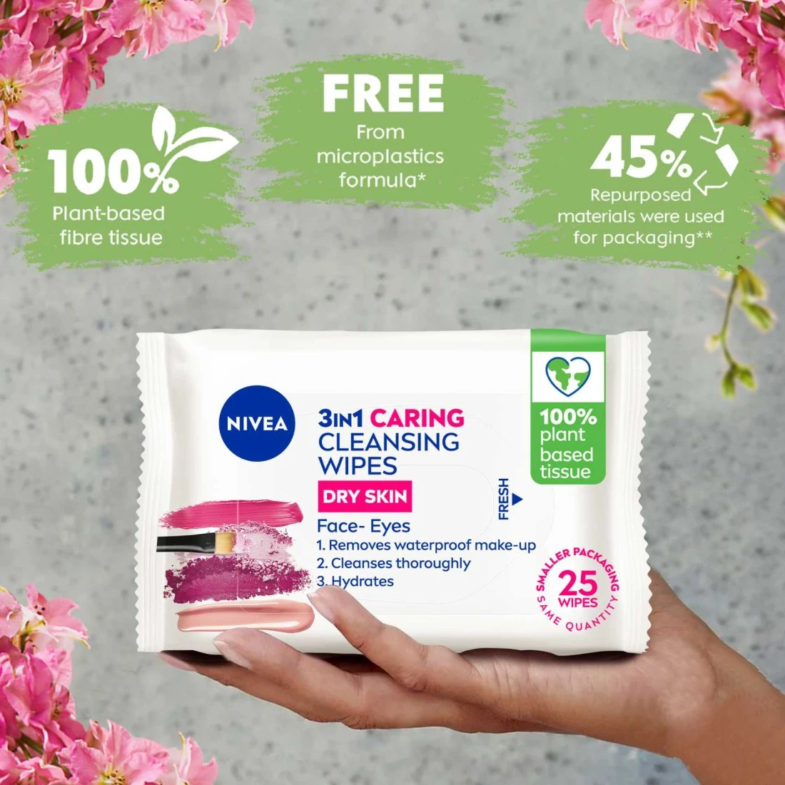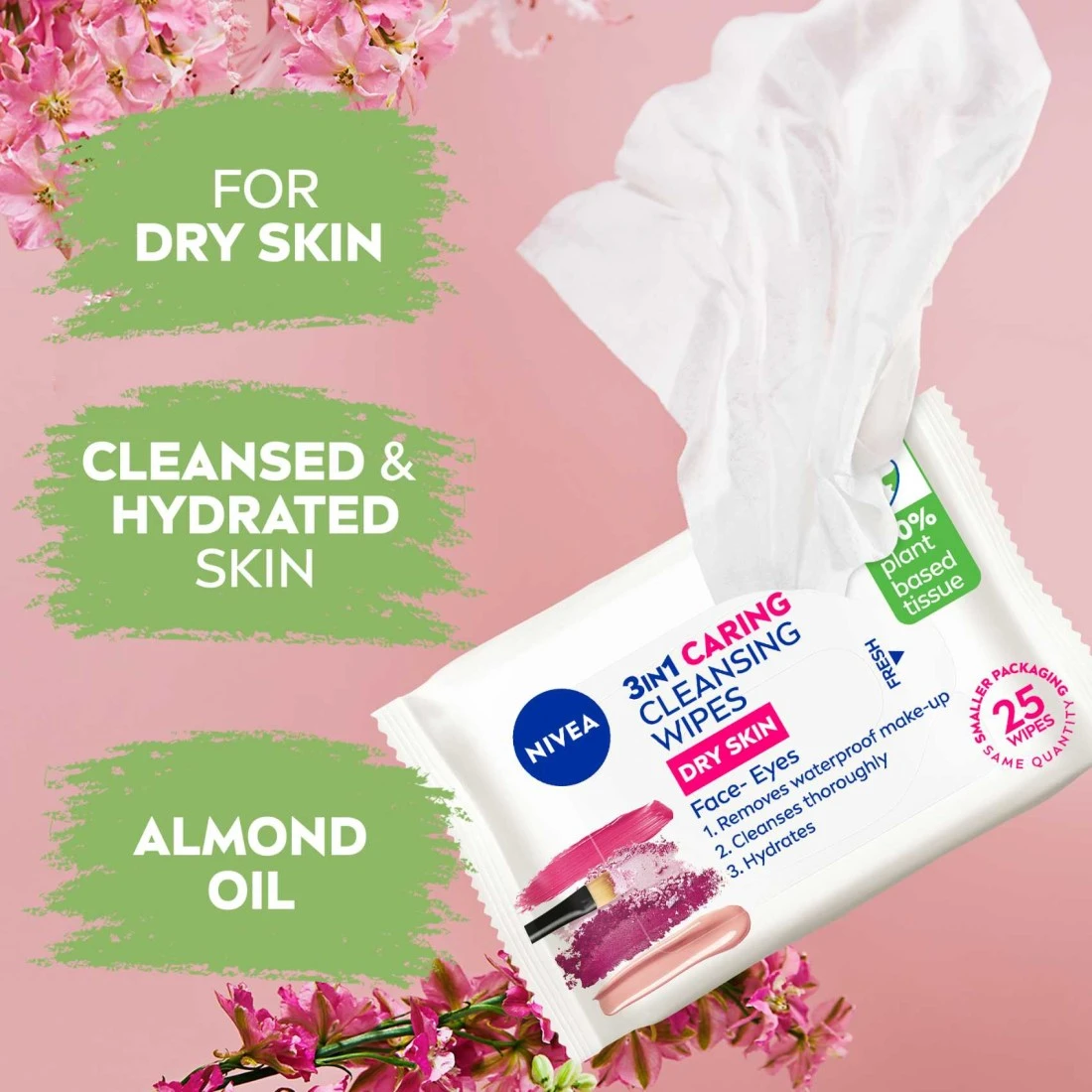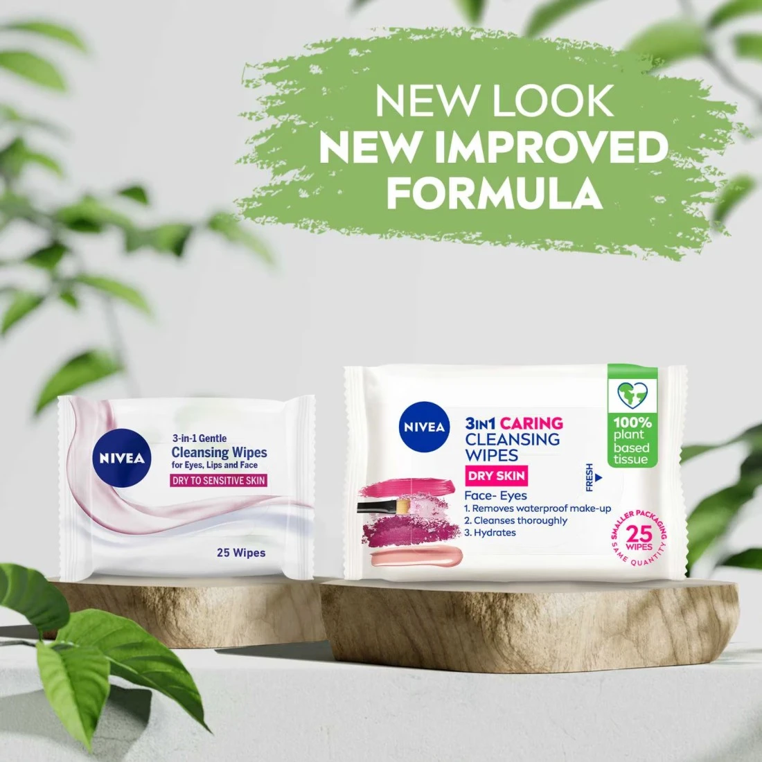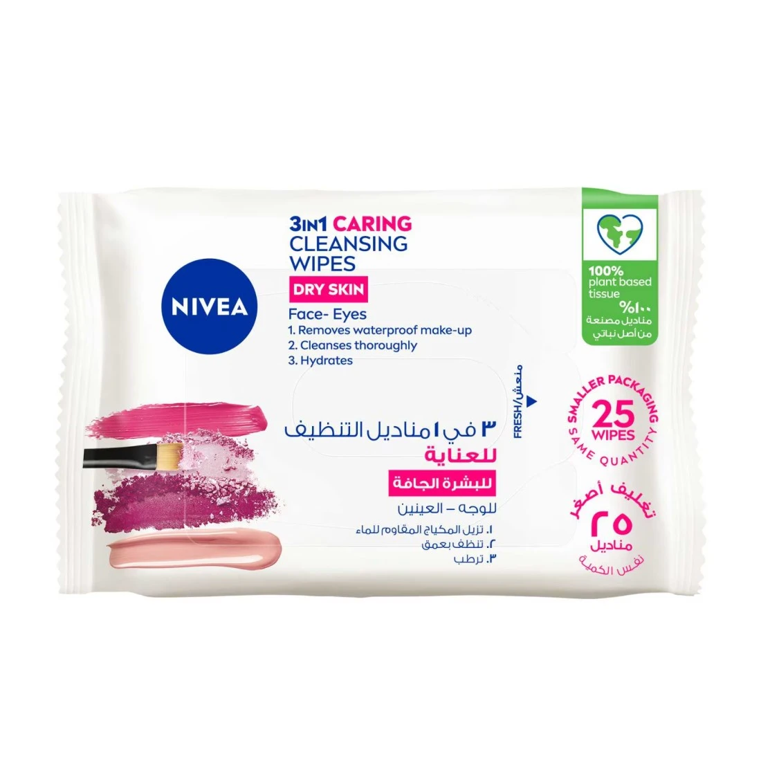 نيڤيا مناديل 3 في 1 لتنظيف الوجه اللطيفة، للبشرة الجافة والحساسة، 25 منديل