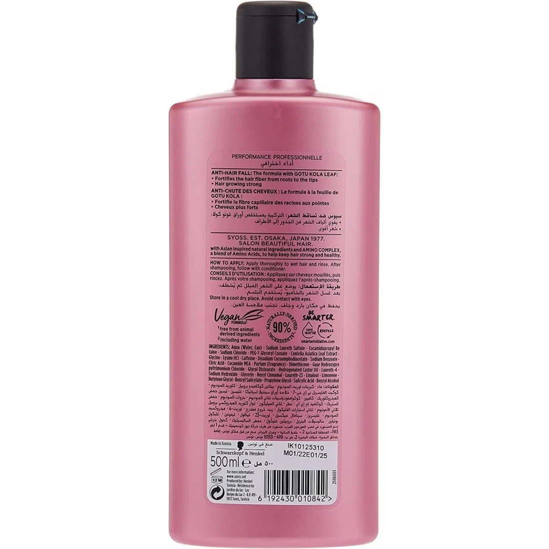 ingredients : أكوا ، كبريتات لوريث الصوديوم، كوكاميدوبروبيل بيتين، كلوريد الصوديوم، بنزوفينون-4، زيت نواة المشمش، بنتانول كوكوديمونيوم هيدروكسيبروبيل هيدروليزيد كيراتين.، كيراتين متحلل، Peg-7 غليسيريل كوكوات، ثنائي الصوديوم كوكامفودي أسيتات، كوكاميد ميا، بنزوات الصوديوم، حمض الستريك، بوليكواتريوم-10، Peg-40 زيت الخروع المهدرج، عطر، ثنائي لوريل غلوكوزايت، ميكا، لينالول، ليمونين، بنزيل ساليسيلات، بروبيلين غليكول، بنثينول كوكاديمونيوم هيدروكسيبروبيل هيدروليزيد كيراتين، كيراتين متحلل، CI 17200، CI 77891، و CI 42090.