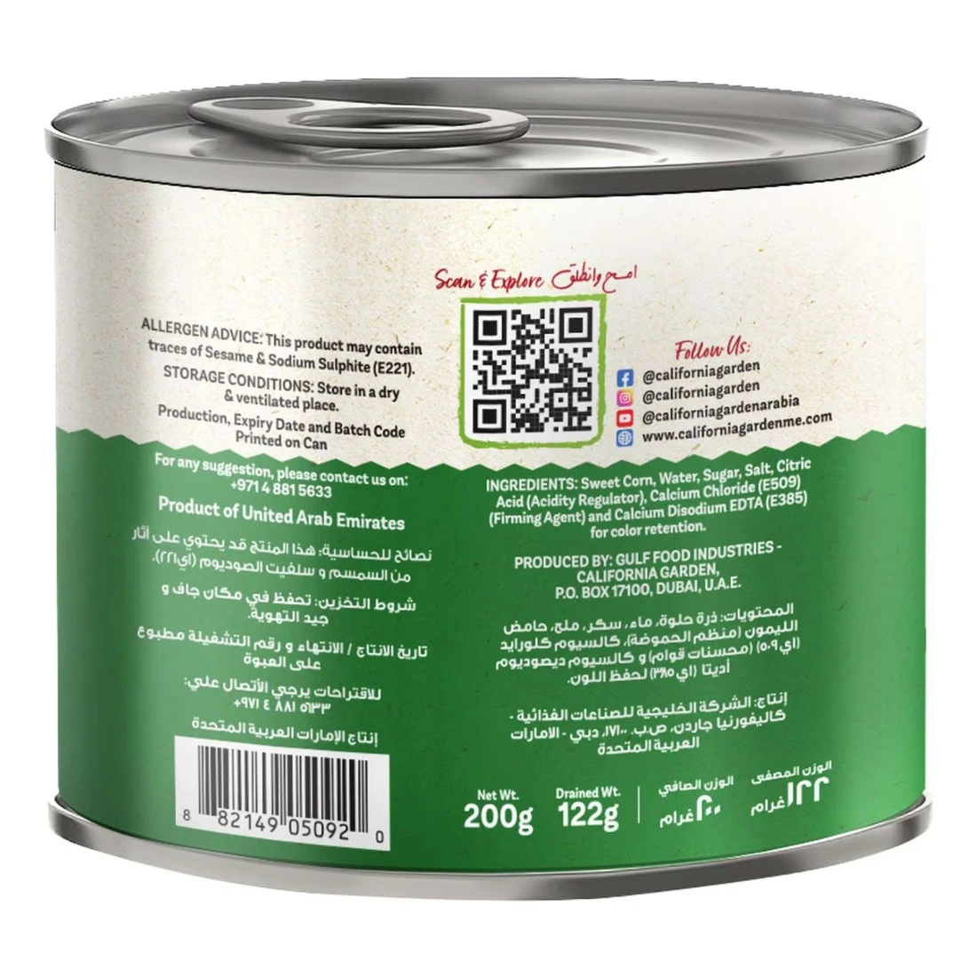 - املأ مخزون مطبخك بعلبة ذرة كاملة في محلول ملحي من حدائق كاليفورنيا بوزن 200 غرام