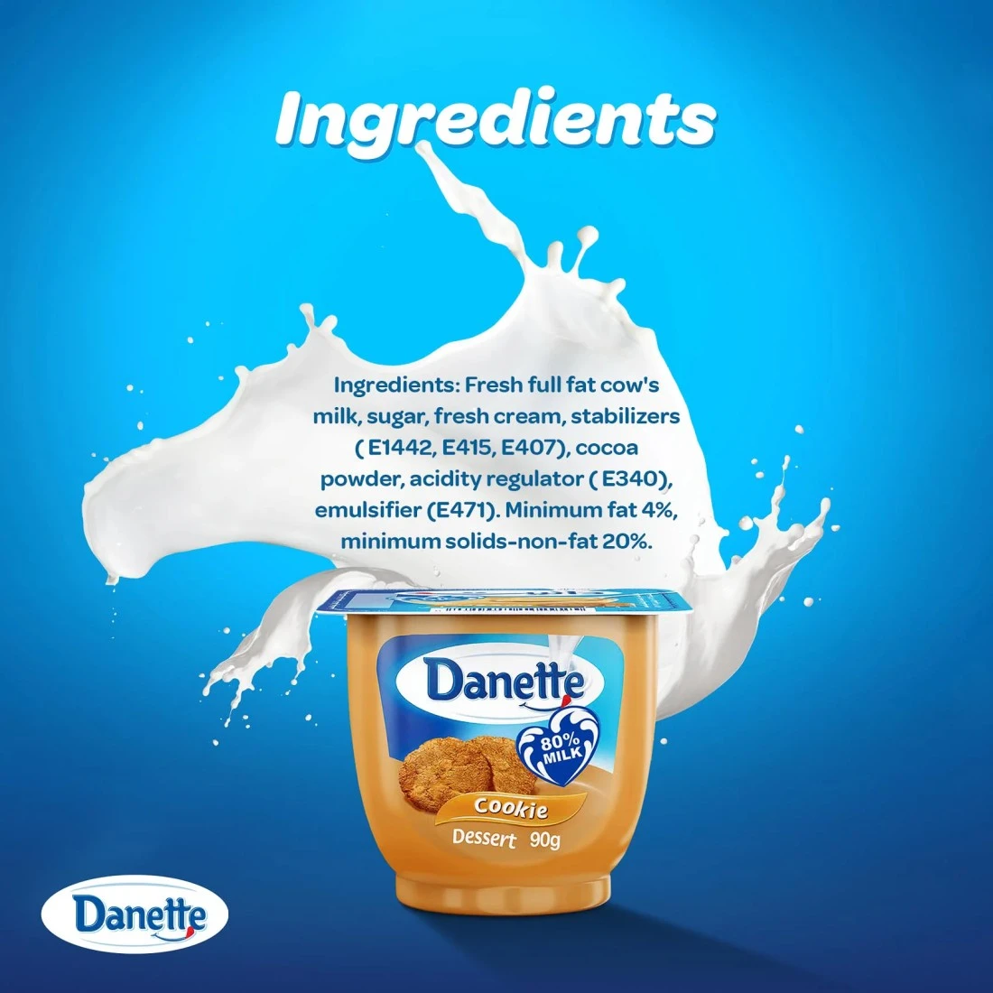 دانيت مصنوع من 80 ٪ من الحليب الطازج وهو الطريقة المثلى لإمتاع نفسك دون تردد. سواء كنت تفضلها كوجبة خفيفة أو كتحلية، فإن دانيت حلى لذيذ وصحي يرضي كل العائلة. قل نعم للمزيد مع دانيت.