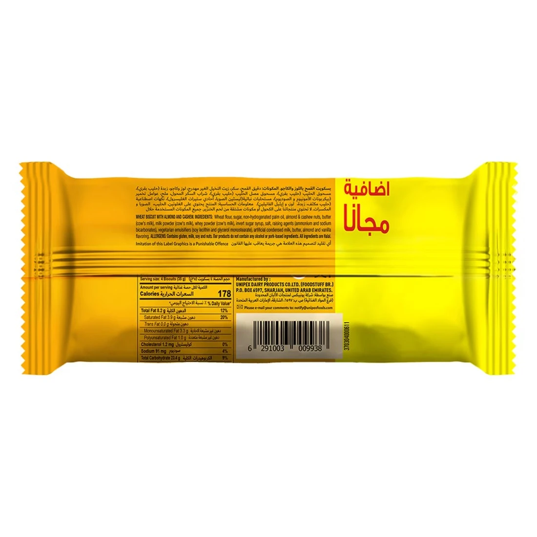كوكيز تيفاني ناتي بايتس باللوز لذيذ ومقرمش. تم صنعه من لوز عالي الجودة، يتميز هذا الكوكيز بنكهة جوزية تُرضي جميع الأذواق. تأتي كل قطعة كوكيز مغلفة بشكل فردي، مما يجعلها مثالية للوجبات الخفيفة أثناء التنقل. يأتي هذا الكوكيز بوزن 72 غرام، كما يتميز بحجمه الكبير الذي سيشعرك بالشبع. سواء كنت تستمتع به مع كوب من الشاي أو بمفرده، فهو متعة لا تُنسى في أي وقت من اليوم.