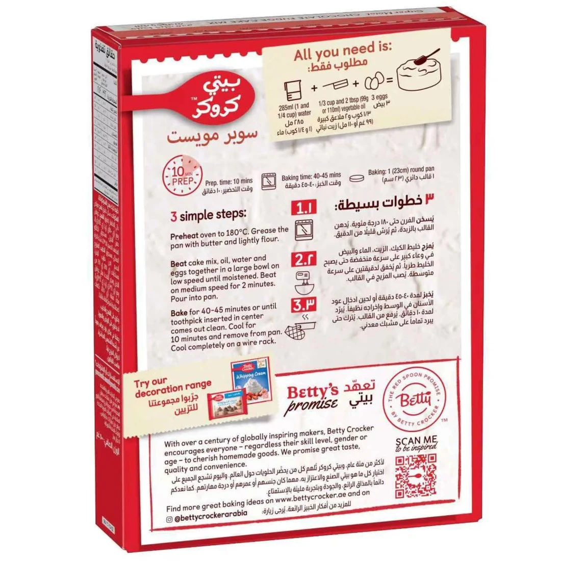 خليط كيك فدج الشوكولاطه فائق الهشاشة من بيتي كروكر هو طريقة مريحة ولذيذة لتحضير كيك الشوكولاطه الكلاسيكي. يتميز هذا الخليط برطوبته الغنية ونكهة فدج الشوكولاطه التي تضيف طعمًا غنيًا لا يُقاوم. بخطوات بسيطة فقط، يمكنك الحصول على كيك بطعم منزلي سيحبه الجميع. هذا الخليط مثالي لأعياد الميلاد، والمناسبات الخاصة، أو فقط كحلوى لذيذة. فقط أضف الماء والزيت والبيض واخبز لتحصل على كيك شوكولاطه غني ورطب يلفت الأنظار. مع بيتي كروكر، يمكنك دائمًا الاعتماد على مكونات عالية الجودة ونتائج لذيذة.