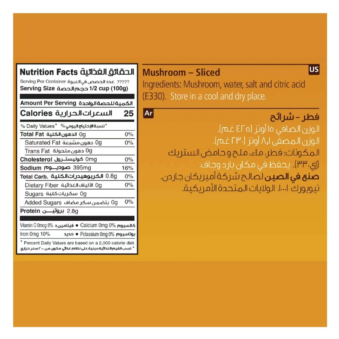 ingredients : الفطر والماء والملح وحمض الستريك