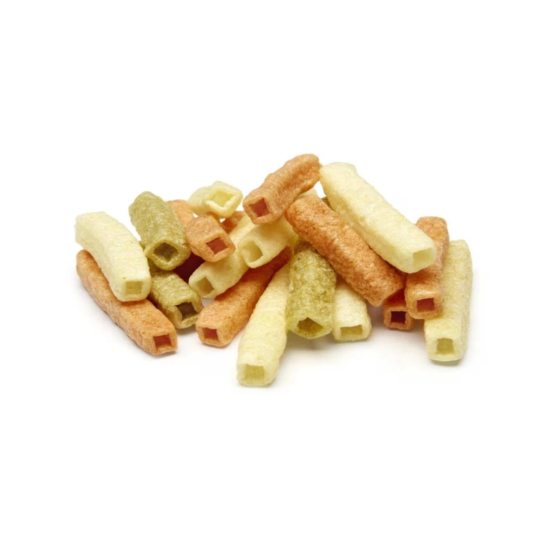 ingredients : نشاء البطاطس (32%)، زيت بذور اللفت، دقيق الأرز (20%)، دقيق البازلاء الصفراء (19%)، كلوريد البوتاسيوم (طريقة طبيعية للحفاظ على ذوبان الملمس)، ملح، مسحوق طماطم، مسحوق كالي، مسحوق سبانخ، مسحوق شمندر.