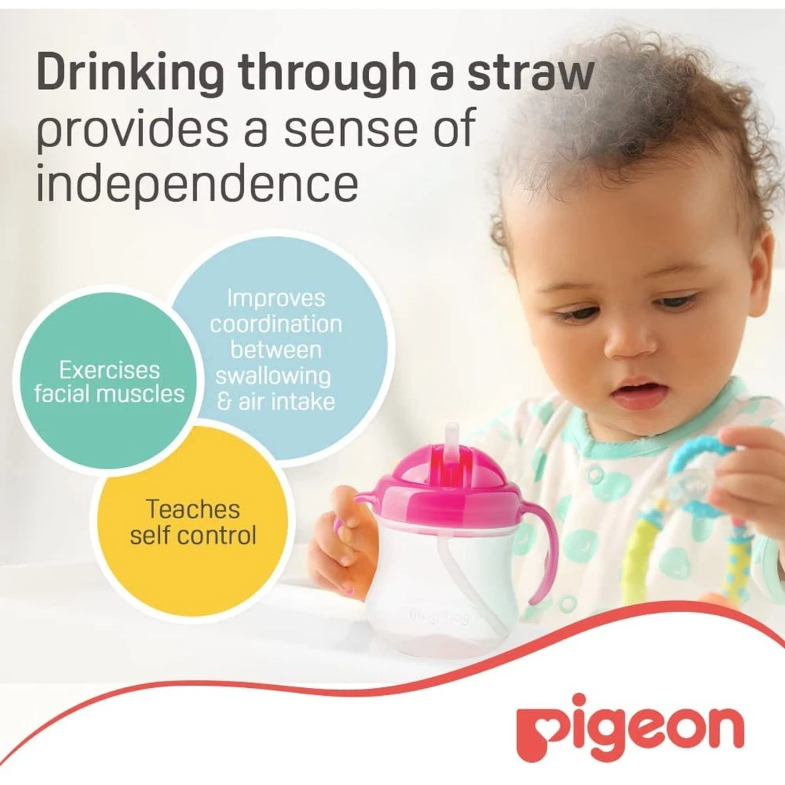 - من المهم أن نوفر له إنتقالًا مريحًا وسلسًا من الرضاعة إلى الشرب بمفرده بواسطة مصاصة