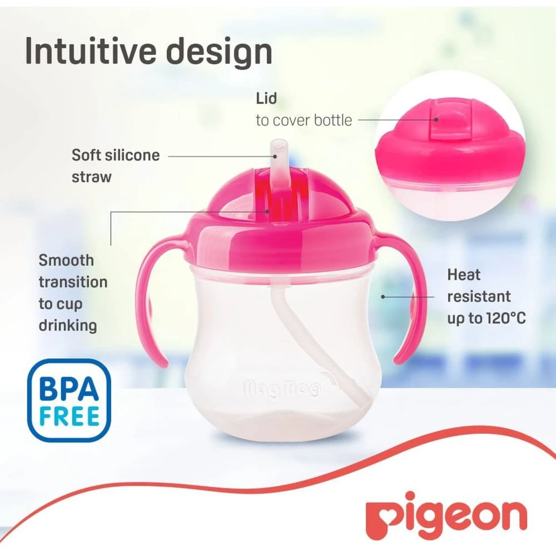- تم تصميم نظام كوب تدريب من ماغ ماغ لتسهيل وتعزيز تطور مهارات شرب الطفل عن طريق السماح بإنتقال سلس من الحلمة إلى المصاصة بإستخدام أغطية الشرب القابلة للتبديل