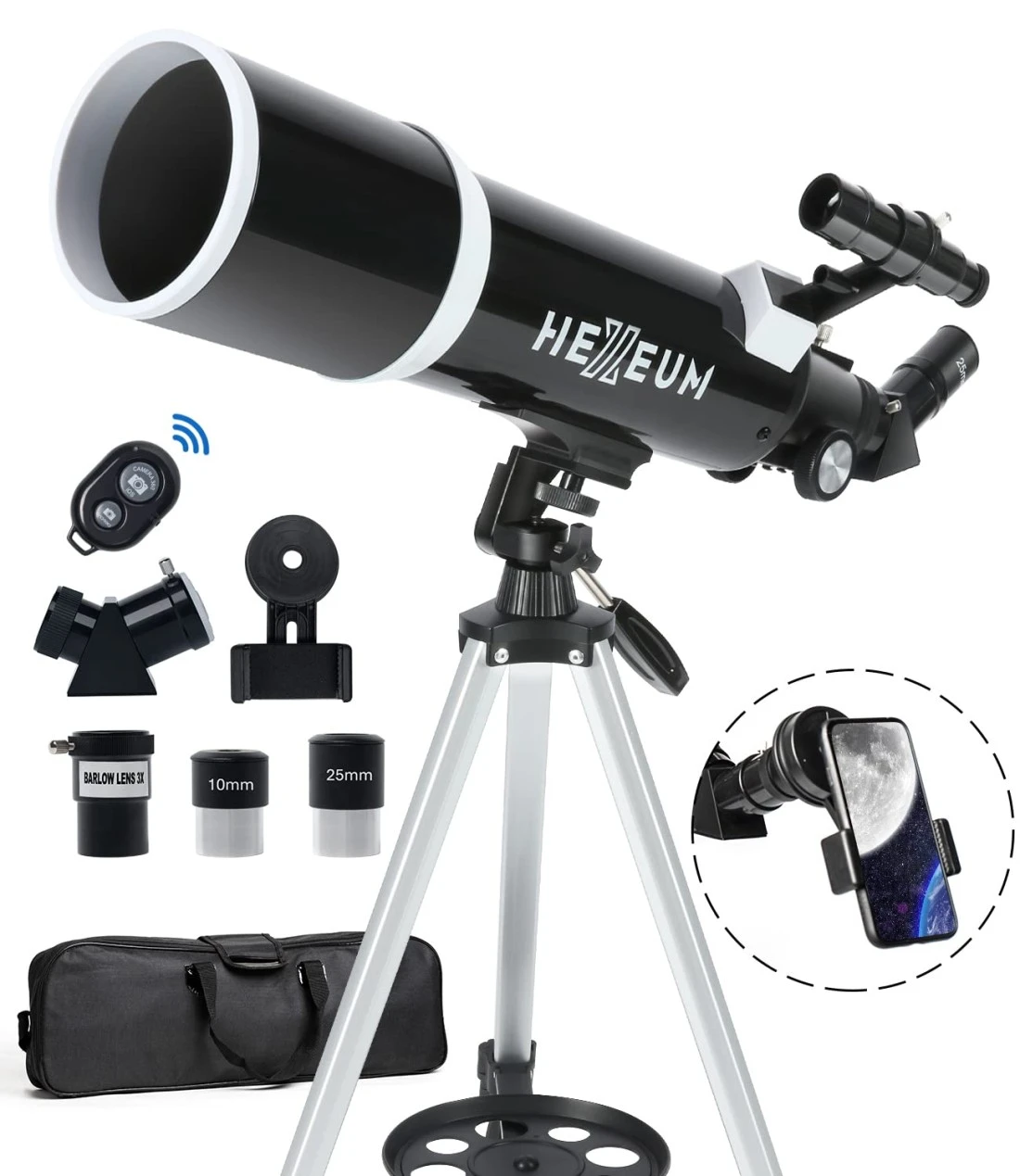 Telescope for Adults & Beginner Astronomers - 80mm Aperture 600mm Fully Multi-Coated High Transmission Coatings with AZ Mount Tripod Phone Adapter, Carrying Bag, Wireless Control.