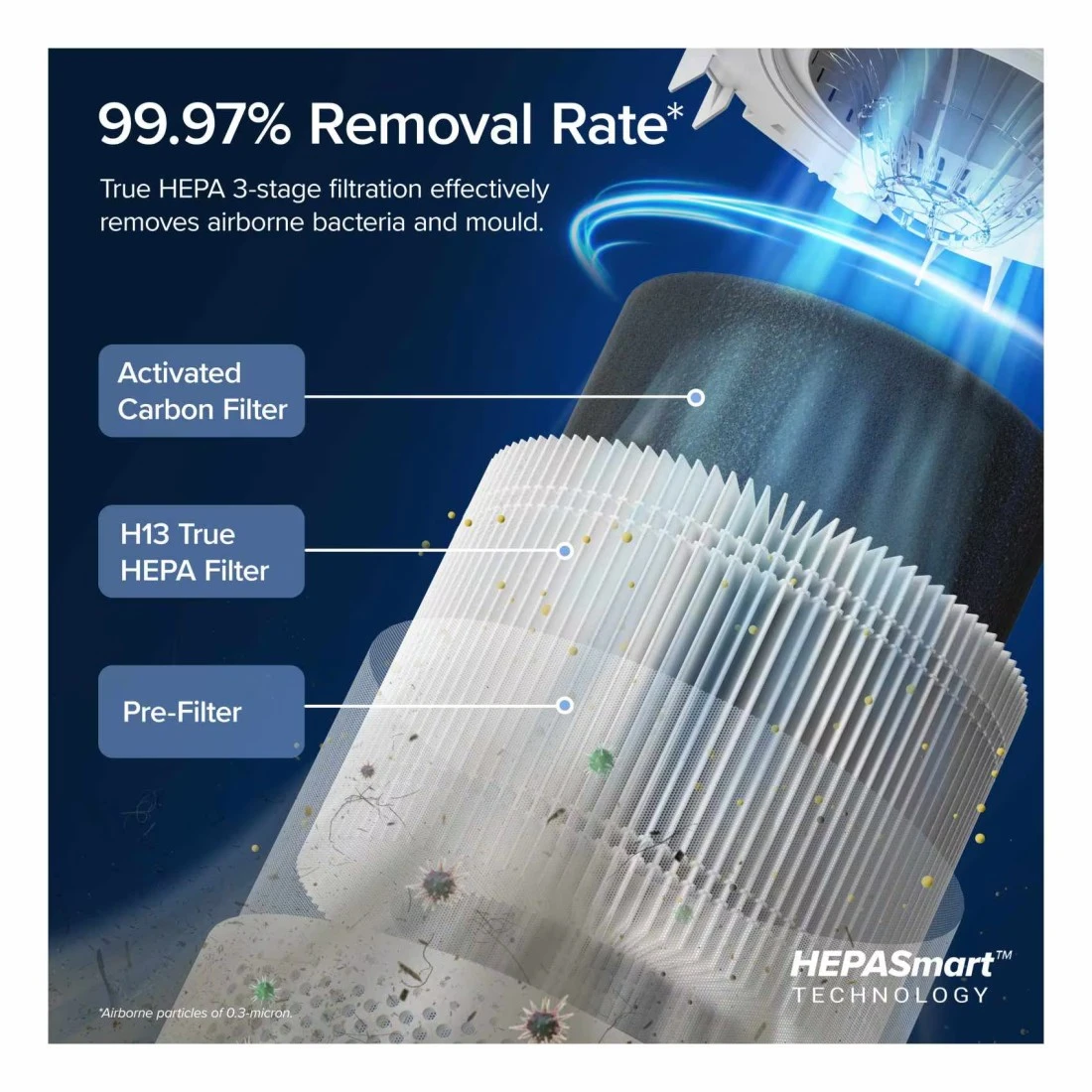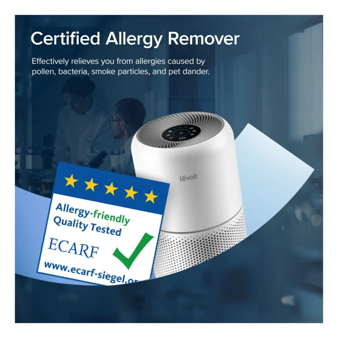 - يستخدم نظام ترشيح ثلاثي المراحل لالتقاط وإزالة المواد المسببة للحساسية المختلفة، وبر الحيوانات الأليفة، والدخان، وجراثيم العفن، والجسيمات الضارة الأخرى