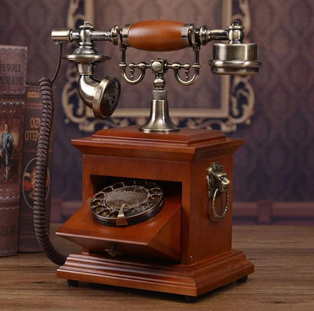 Sprintee Vintage Retro Antique Landline Phone with Wooden Base Drawer, Vintage Telephone European Style Old Fashioned Wired Telephone For Home Office Cafe Restaurant Decoration