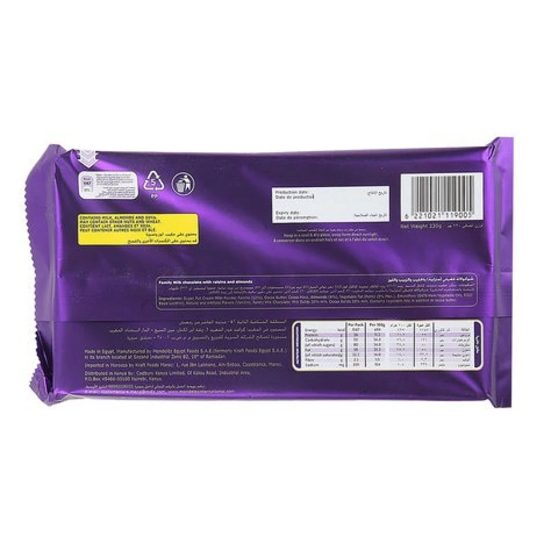 شوكولاتة كادبوري باللبن والفواكه والمكسرات 230 جم