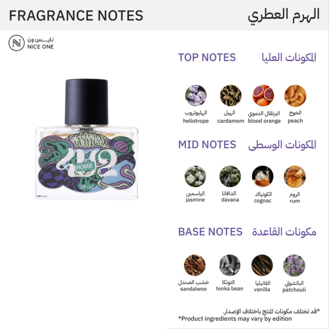 عطر هومي للجسم والشعر من فور يو تو رائحة جذابة منعشةعطر الجسم والشعر يمنحك رائحة جذابة تدوم طوال اليوم.رائحة غنية ومميزة مع نغمات خشبية وراتنجية بالإضافة إلى أنها لطيفة ومغرية.يمكن استخدامه للجسم والشعر فهو آمن وذو رائحة غنية فواحة.تبدأ رائحة العطر بالخوخ والبرتقال الدموي والهيل و الهليوتروب.بينما قلب العطر مكون من مزيج من الروم والكونياك والدافانا والياسمين.محاط برائحة القاعدة المكونة من أوراق الباتشولي الإندونيسي والفانيليا والتونكا وخشب الصندل والجاوي والكاشميران واللابدانوم ونجيل الهند.