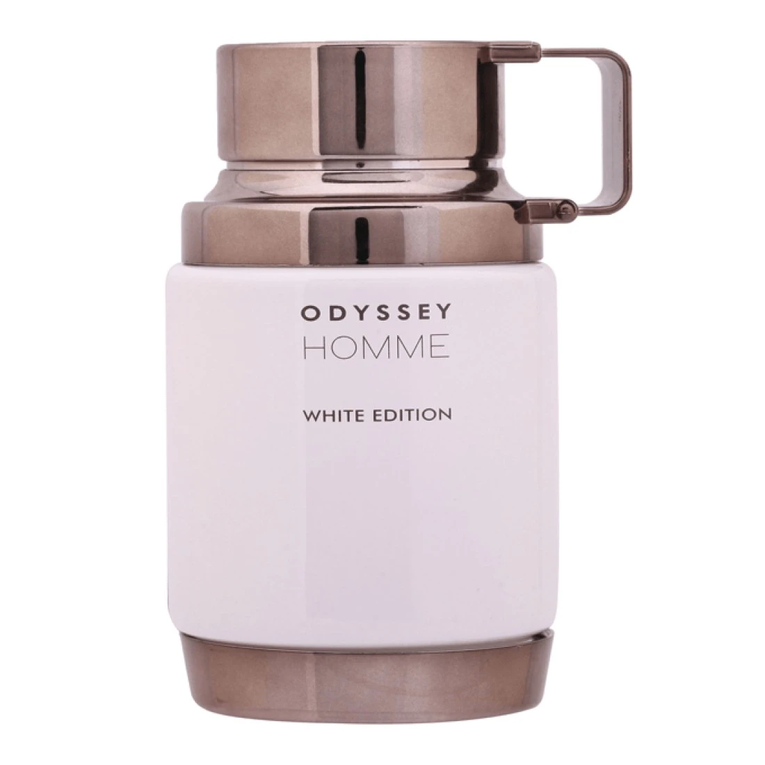 عطر اوديسي أوم وايت ايديشن من أرماف للرجال:اوديسي أوم وايت ايديشن هو عطر شرقي للرجال برائحة جذابة.تبدأ رائحة العطر باليوزو والفلفل الوردي والجريب فروت، ثم تنتقل للروائح الوسطى التي تحتوي على رائحة البحر وأوراق البنفسج، محاطة برائحة القاعدة الفاخرة من خشب الغاياك والعنبر.هذا العطر الأنيق مناسب لكل أوقاتك.