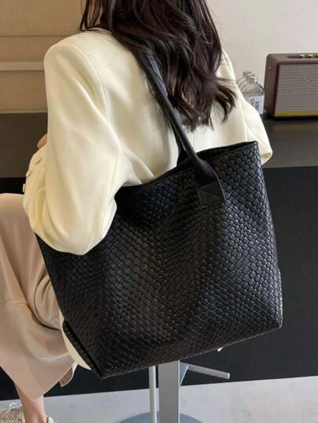 New High Capacity Woven Pattern Handbag Fashionable Shoulder Tote Bag With Niche Design Solid Color Shoulder Bag Suitable For Daily Outings Shopping Work And Commuting Eye Catching Work Bags For Women