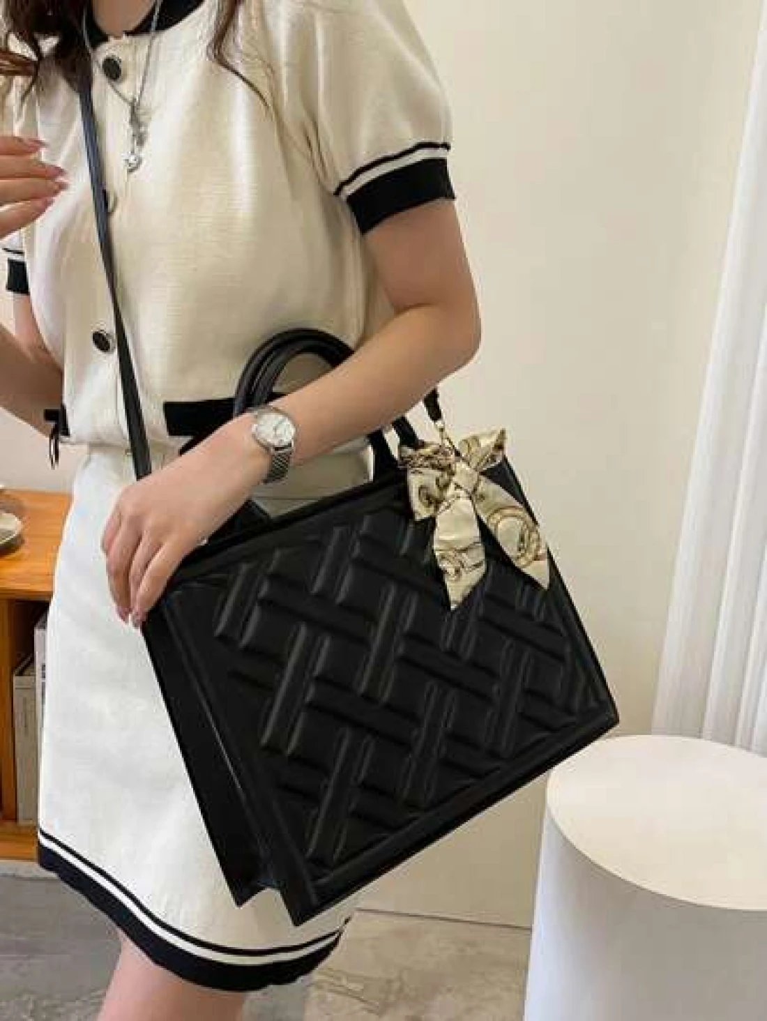 حقيبة يد نسائية عصرية متعددة الاستخدامات مع وشاح، حقيبة تسوق جديدة لصيف 2024 للتنقل،حقيبة كتف وحمل عبر الجسم أنيقة مربعة صغيرة مع وشاح مخطط