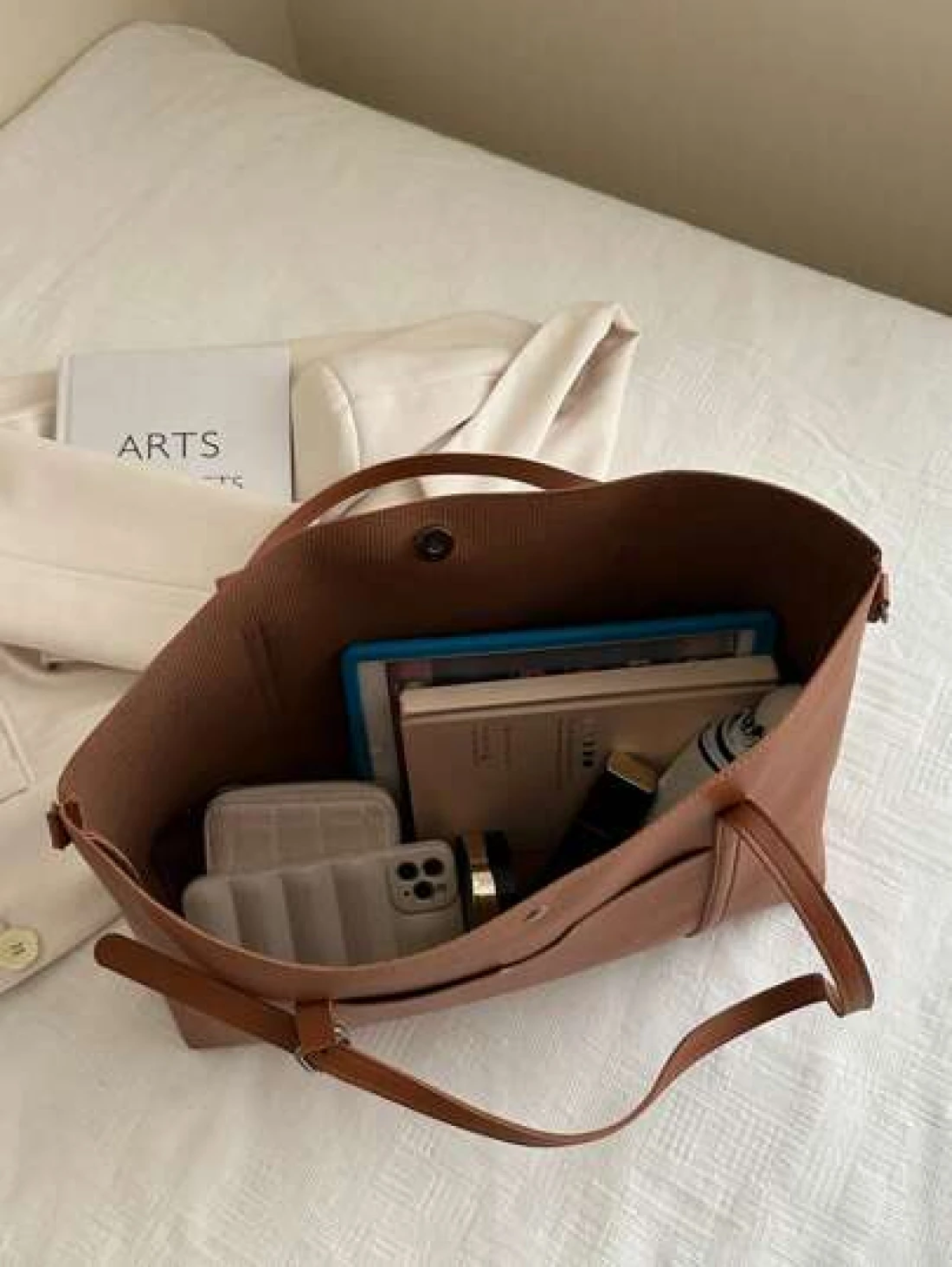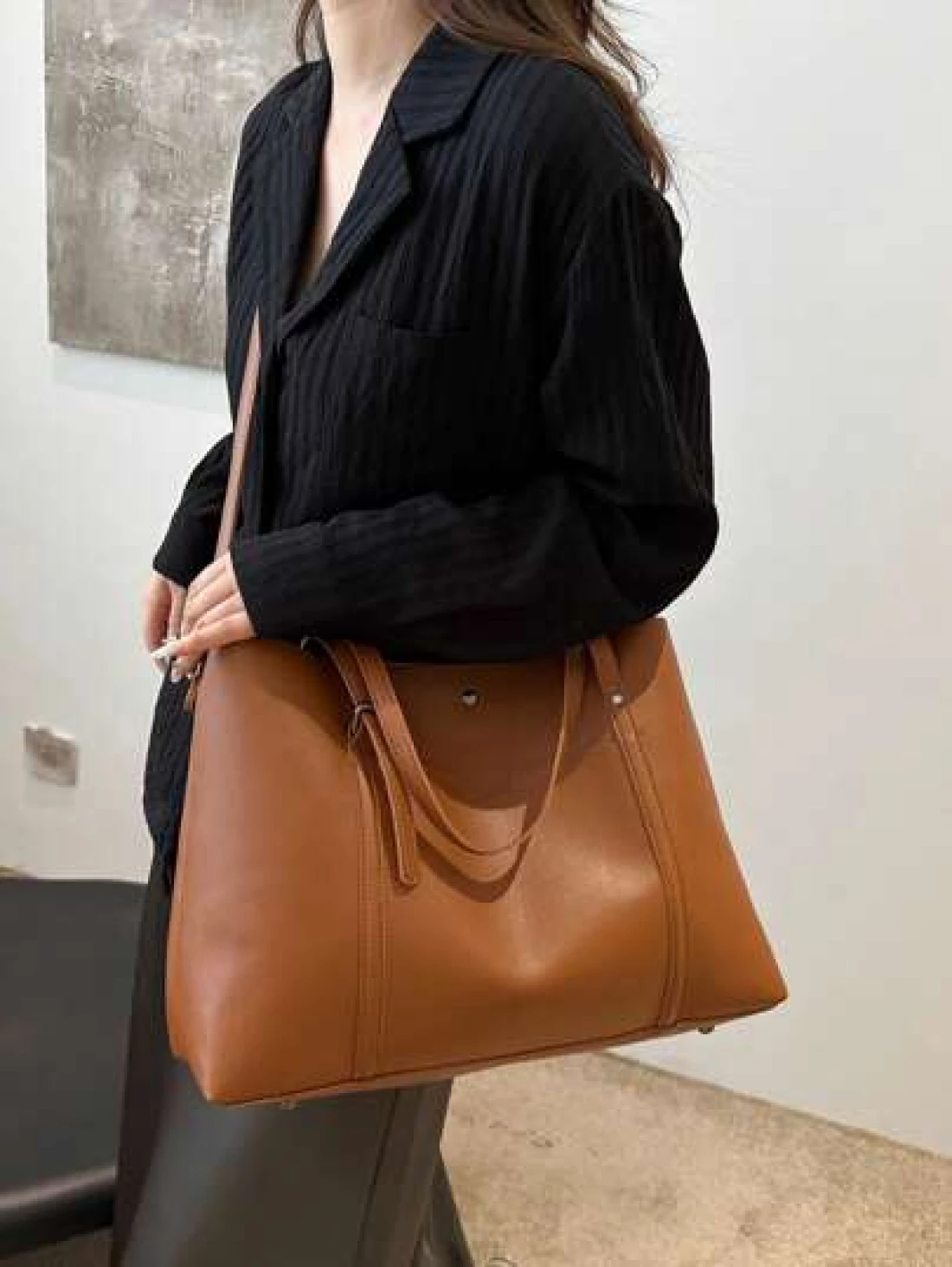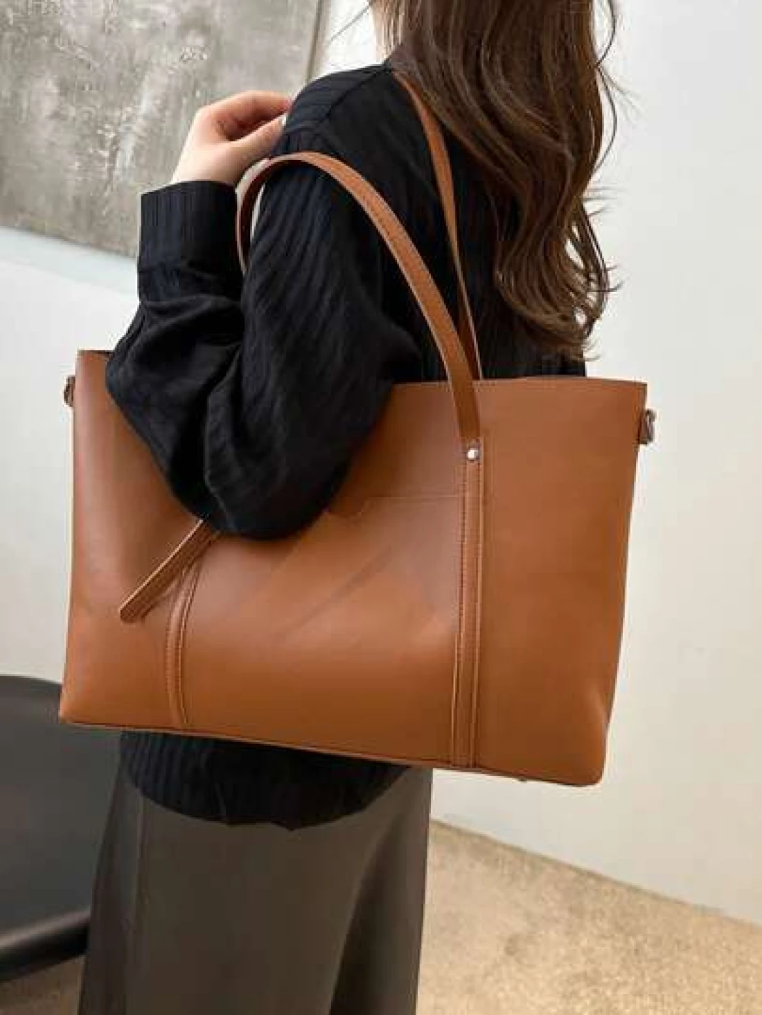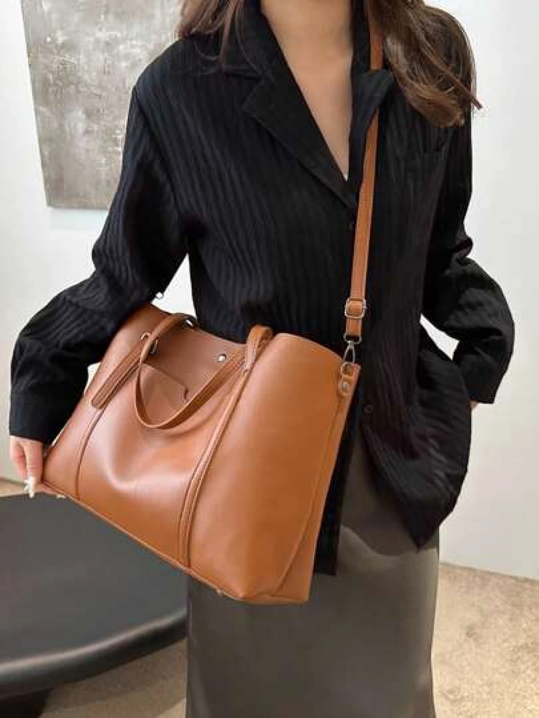 حقيبة تسوق كبيرة السعة ذات لون أحادي للنساء للتنقلات اليومية