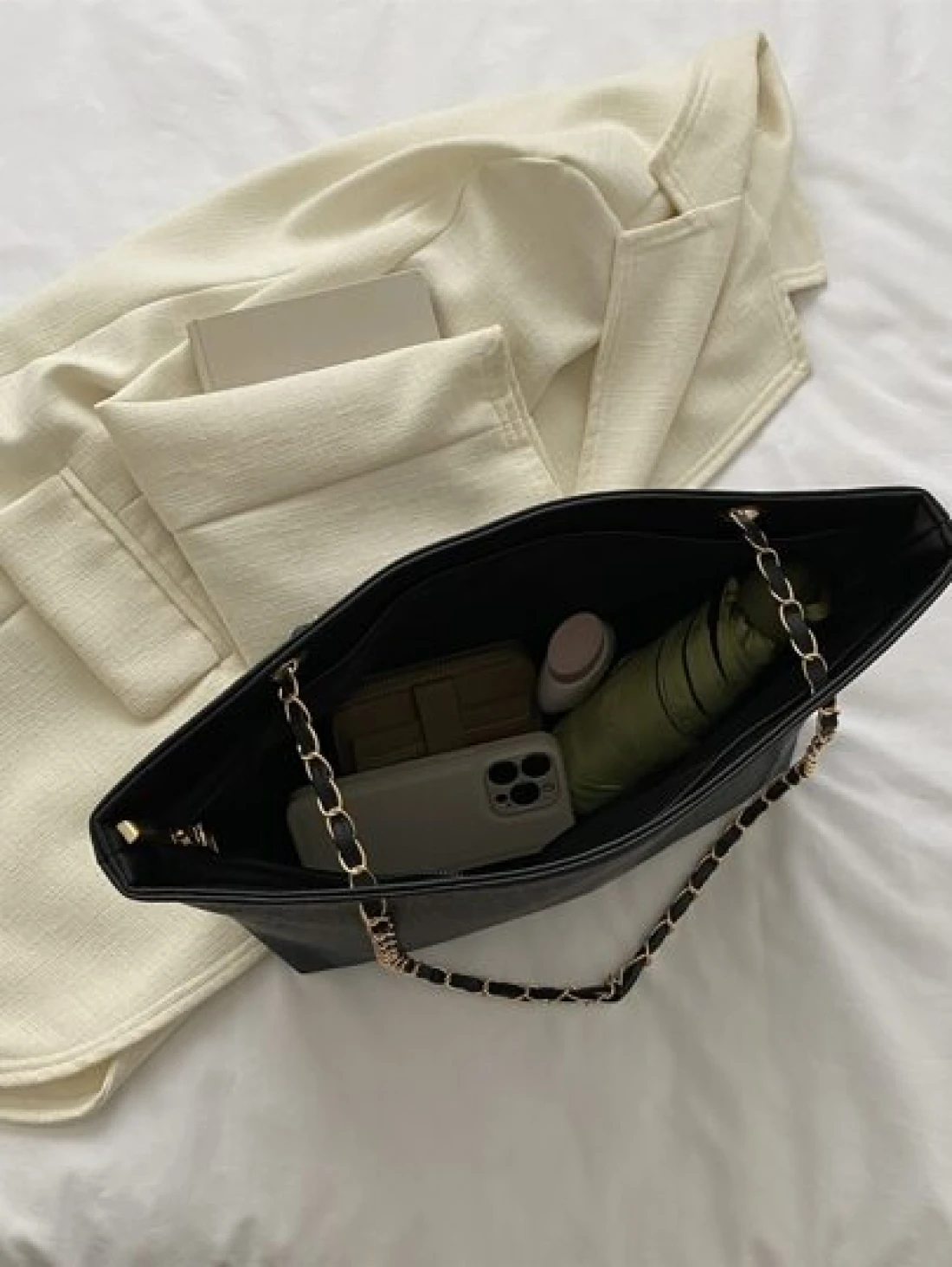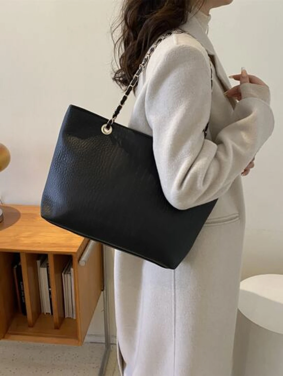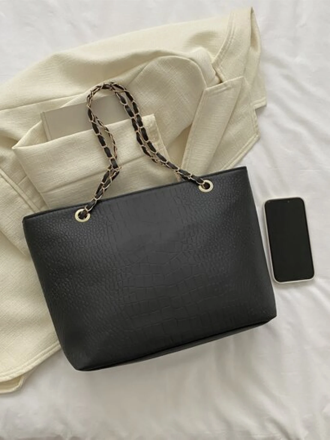 حقيبة كتف ذات سلسلة وفتحات هندسية محفورة، حقيبة مدرسية، العودة إلى المدرسة، سعة كبيرة، كاجوال للعمل، محمولة،