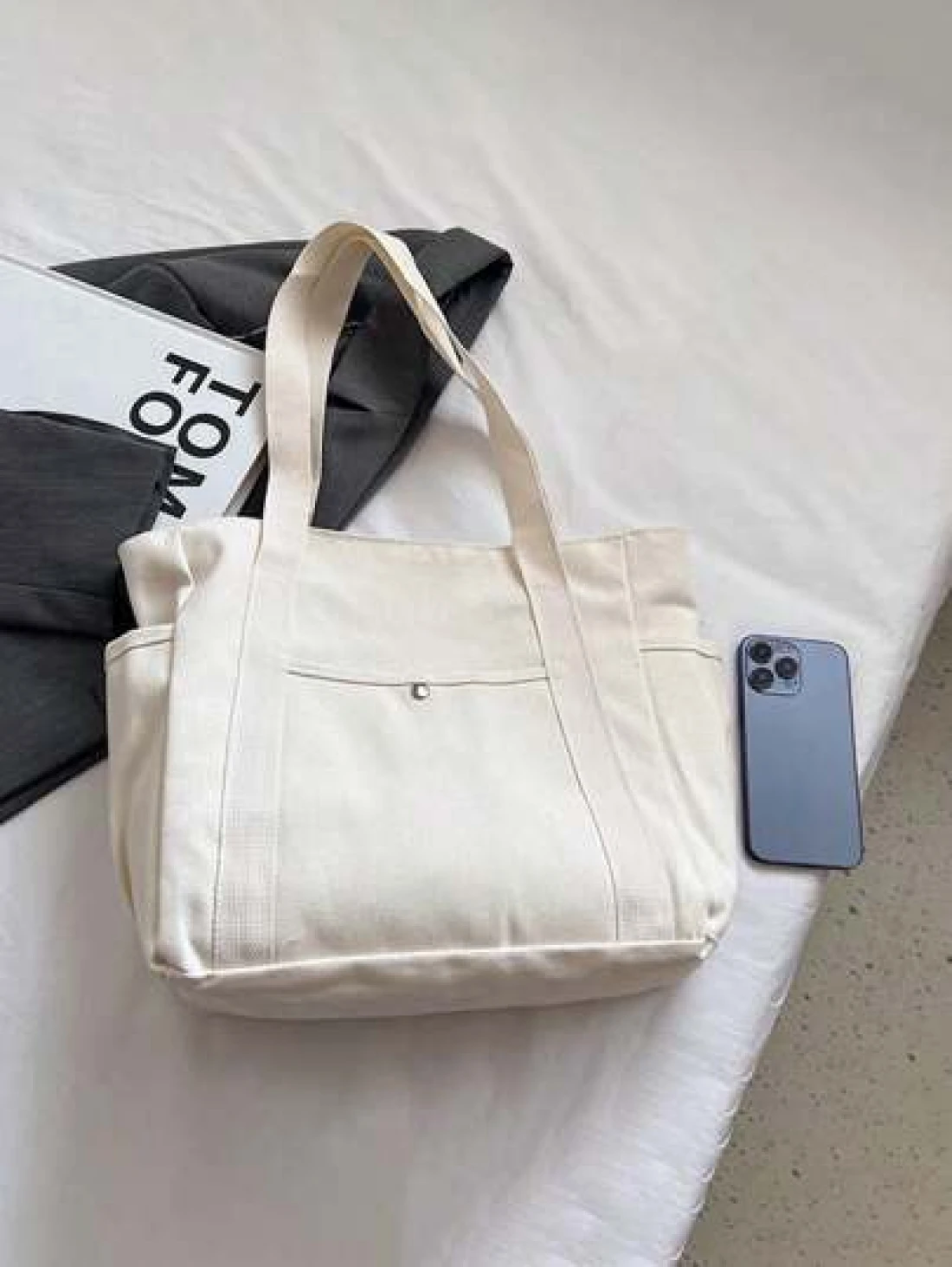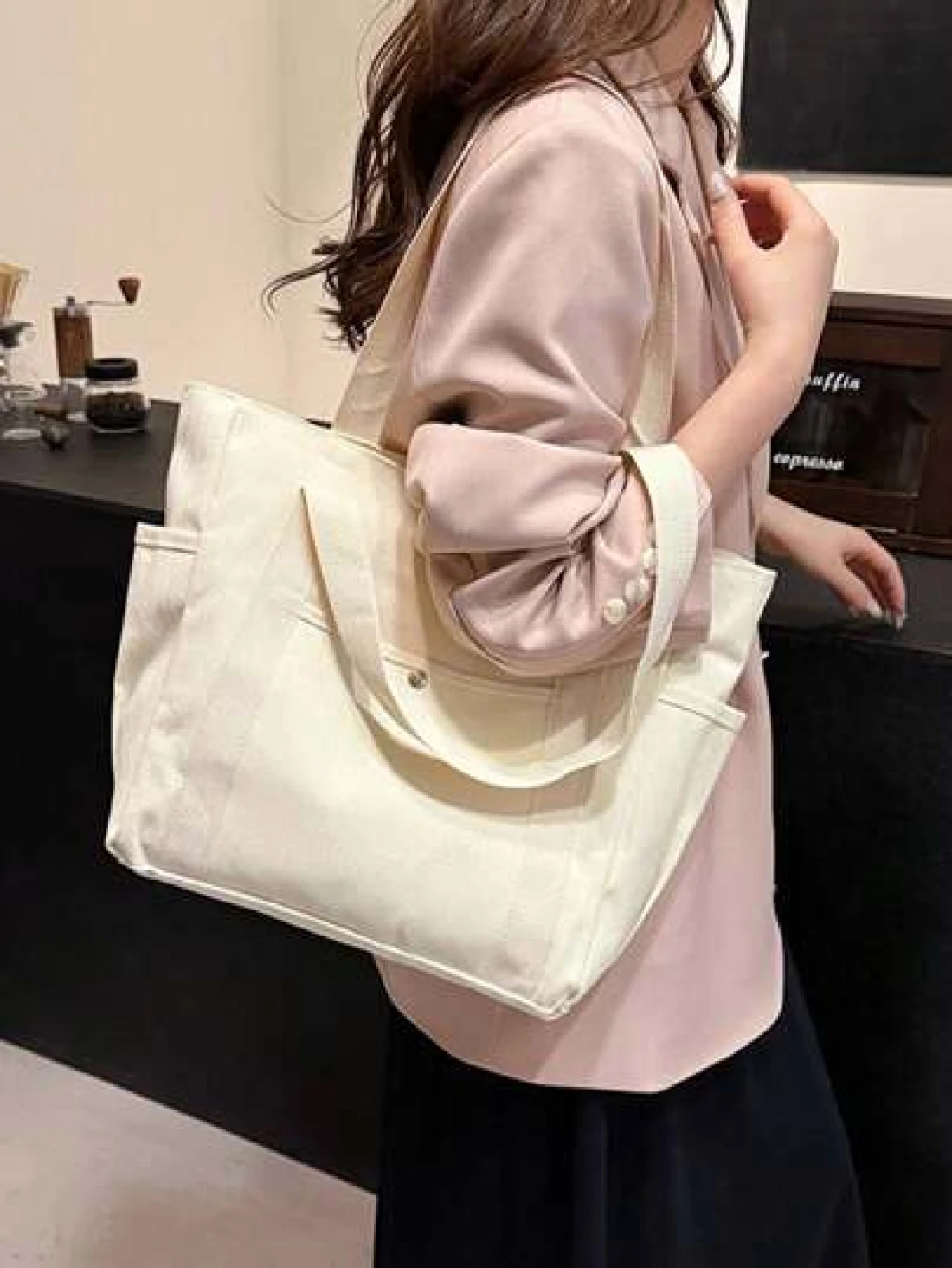 Multi Pocket Tote Bag For Women Canvas Bag With Handle Bag Large Capacity Purse Reusable Handbag Canvas Tote Bag Perfect For Daily Use And Travel Tote Bags For Students Multiple Compartments Perfect F