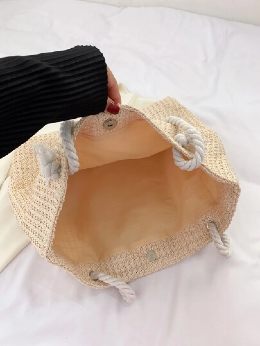 حقيبة قش خفيفة بسعة كبيرة للفتيات والنساء وطلاب الكليات والجامعات ومثالية للكلية، والرحلات، والمناسبات، وحق