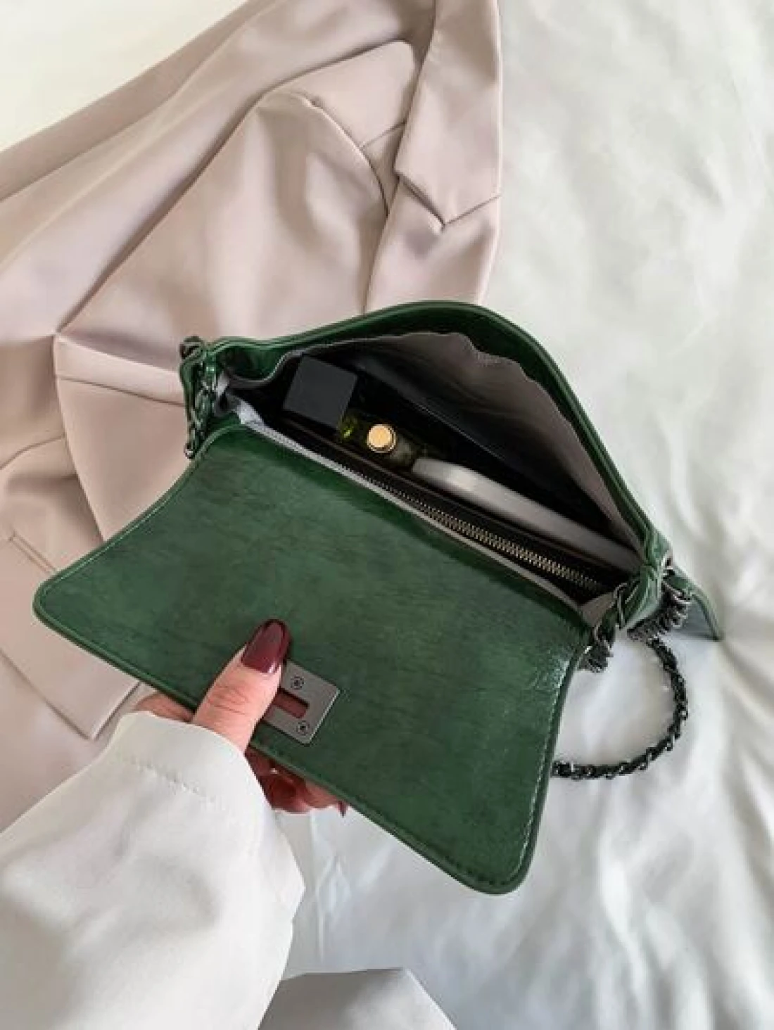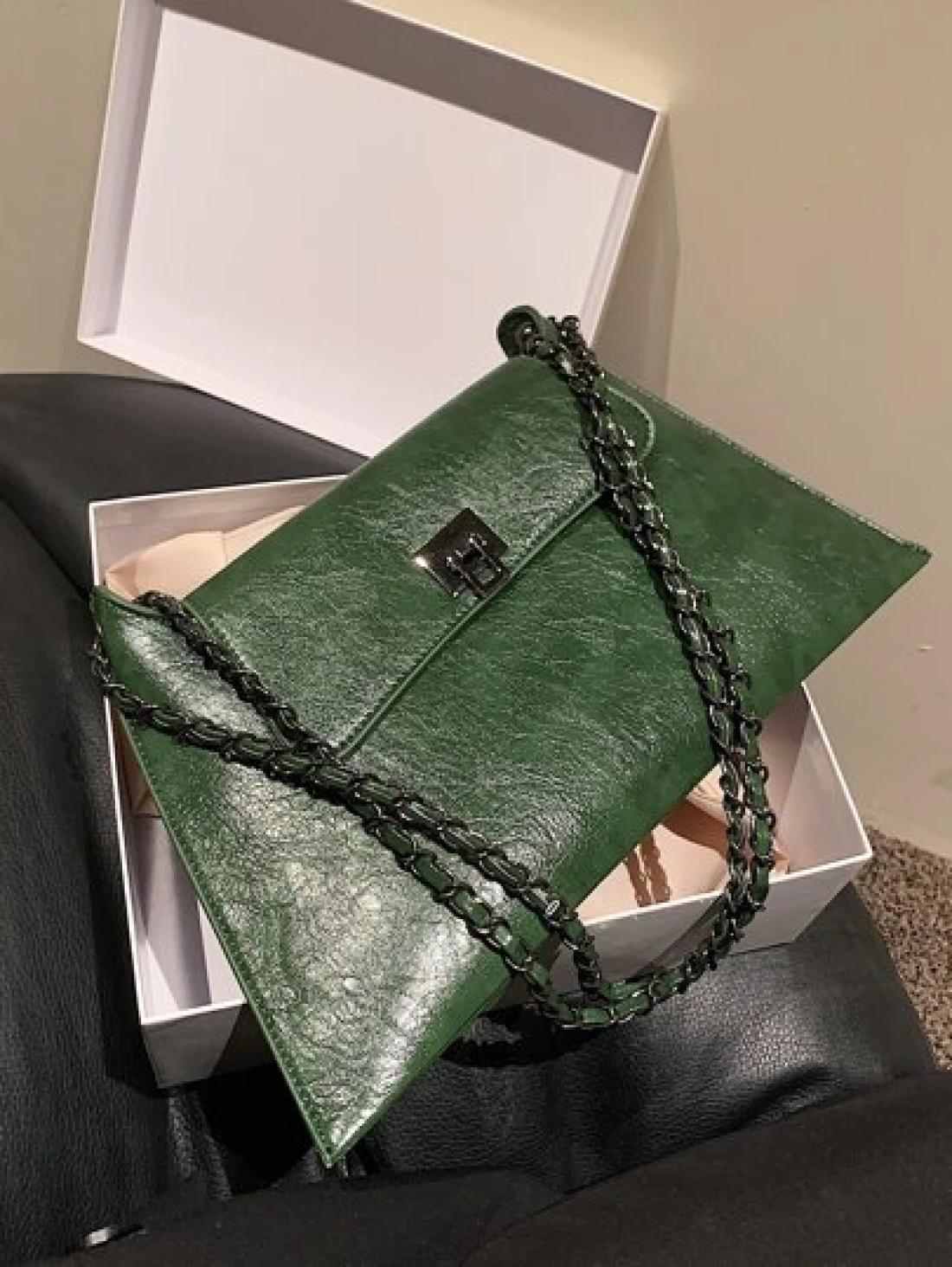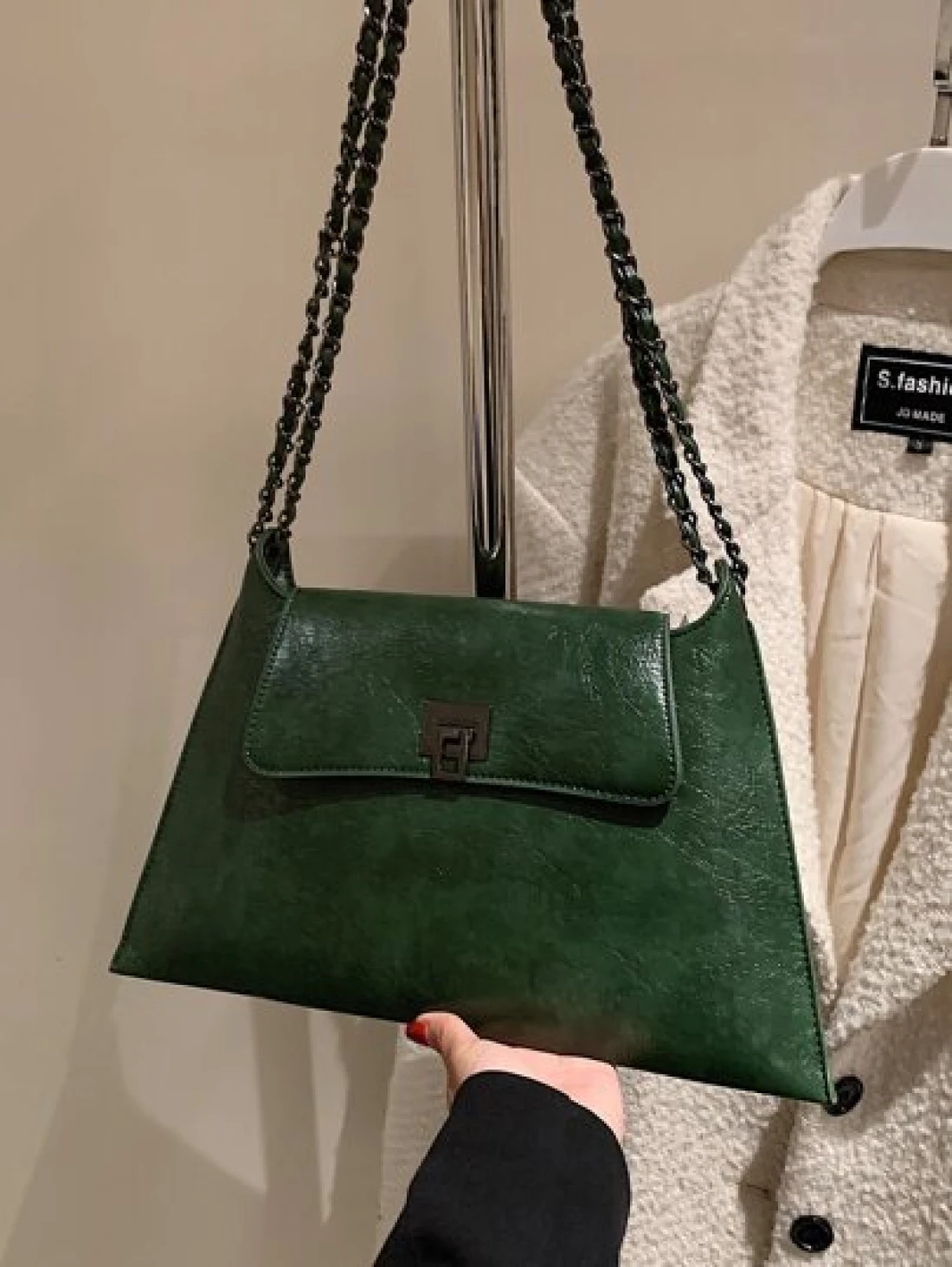 حقيبة كتف كلاسيكية راقية متعددة الإستخدامات بسلسلة رصينة ولون صلب و تصميم انيق لإطلالة شارعية أثناء العطلات، مثالية للتسوق والموضة.