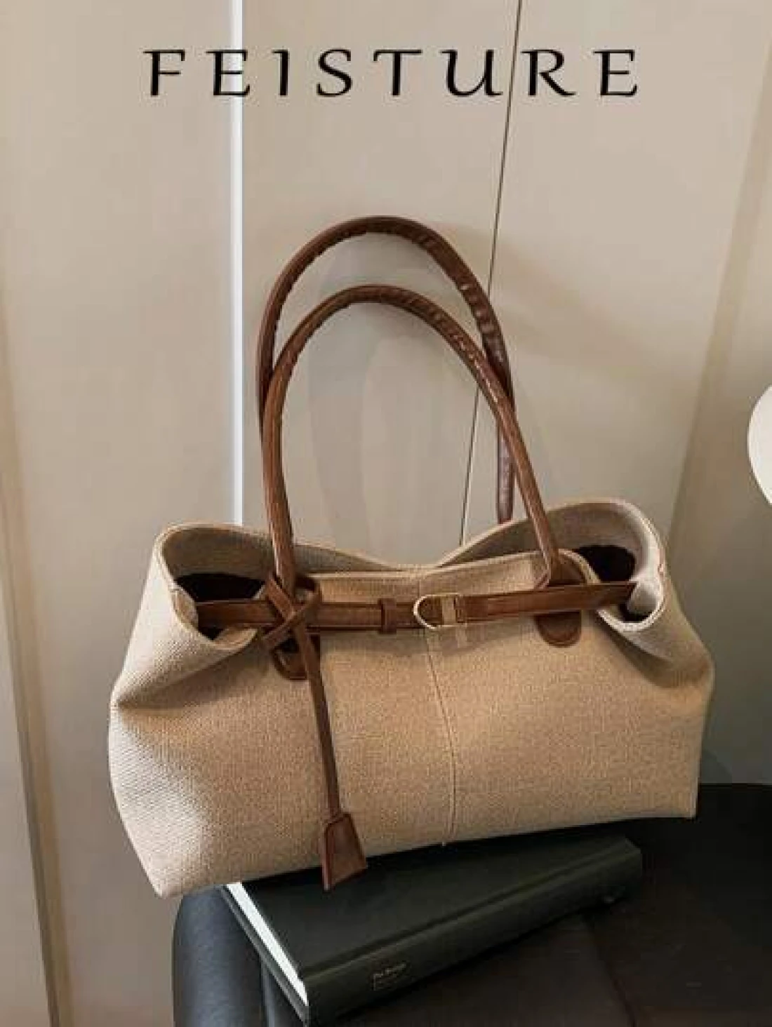 قطعة واحدة من حقيبة اليد المنسوجة من القش الصيفية من علامة FEISTURE، حقيبة على الشاطئ، تصميم حزام مع إبزيم كبير السعة، مغلقة بإبزيم مغناطيسي، مناسبة للفتيات والسيدات وطالبات الجامعة والموظفين، مناسبة للعمل والأعمال التجارية والتنقل والمدرسة