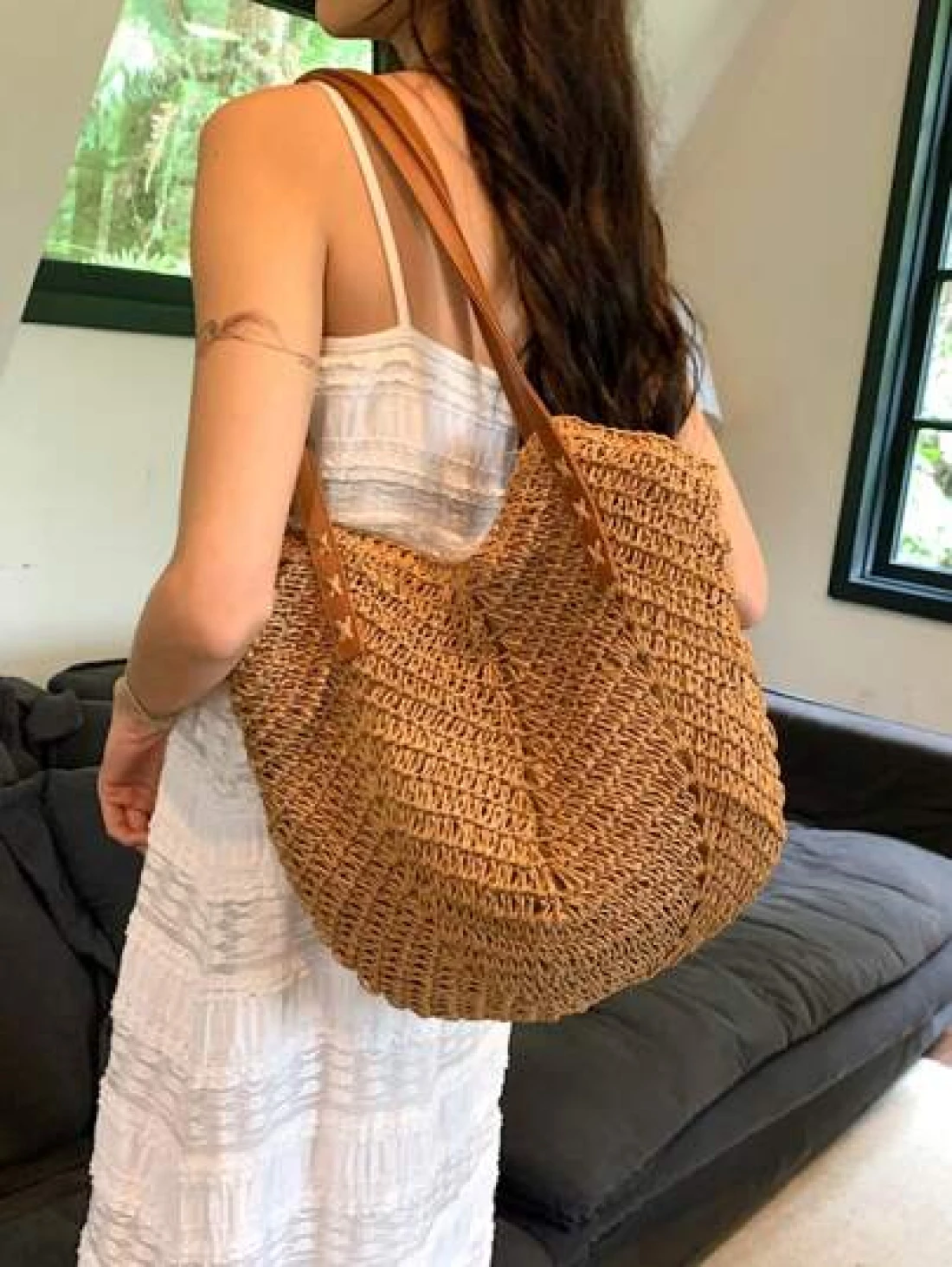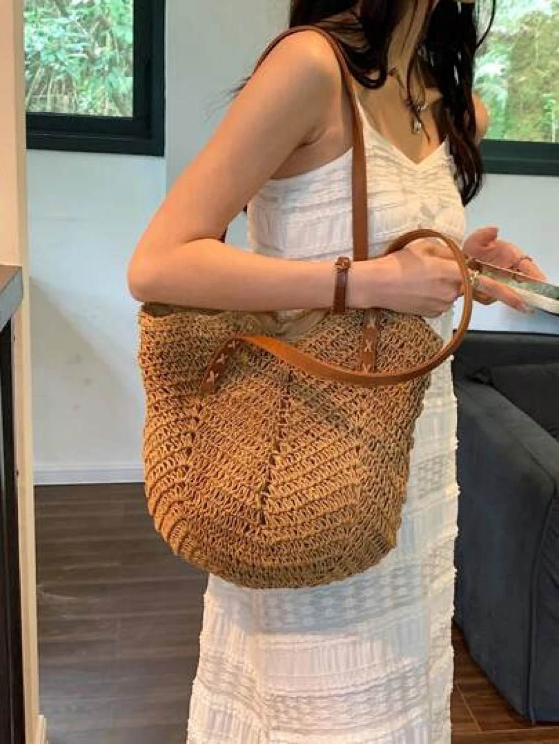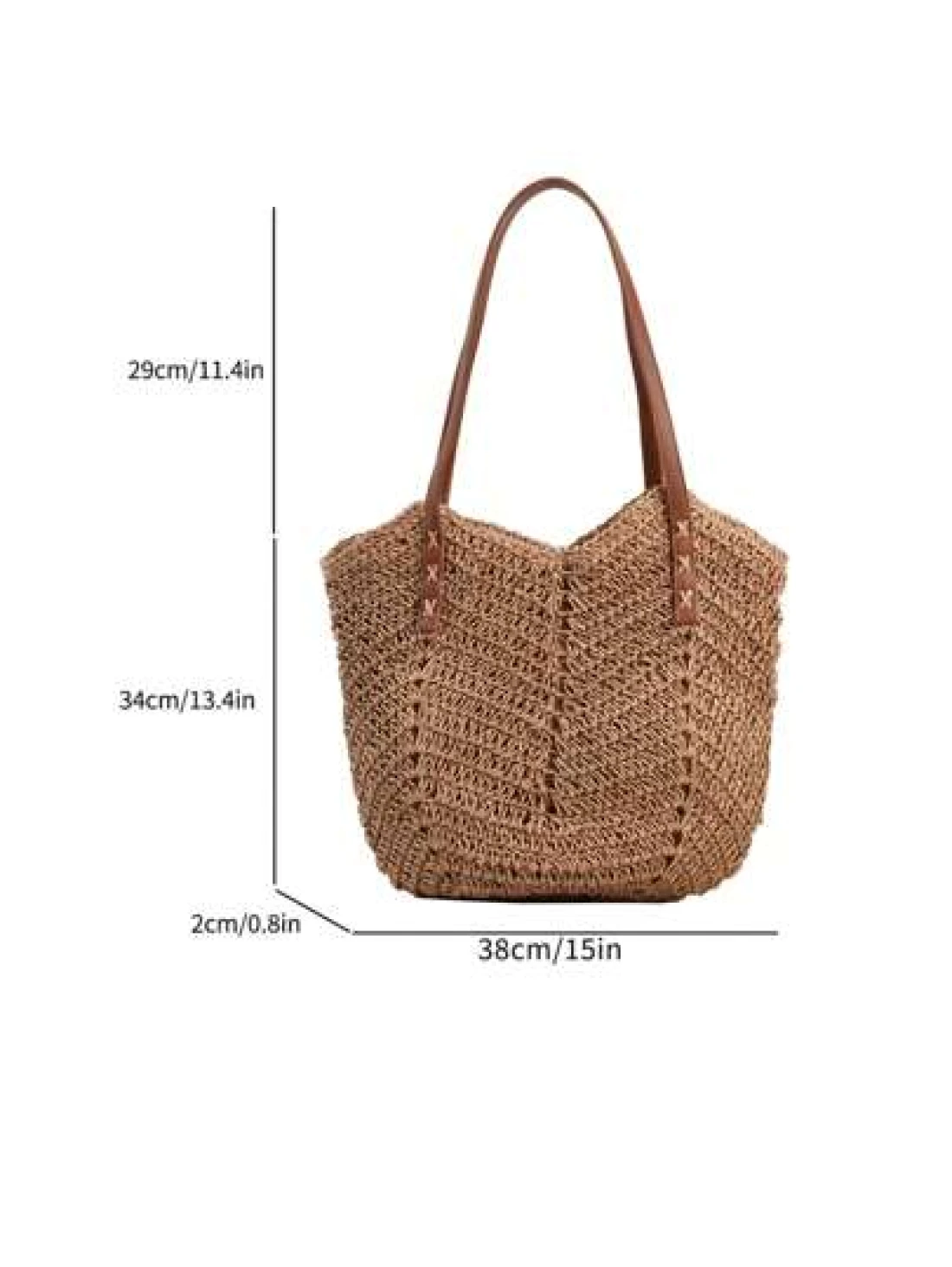 حقيبة قش سعة كبيرة بمقبضين موضة جديدة للنساء، مناسبة للتنقلات اليومية والتسوق والسفر، تصميم خفيف وعملي مثالي
