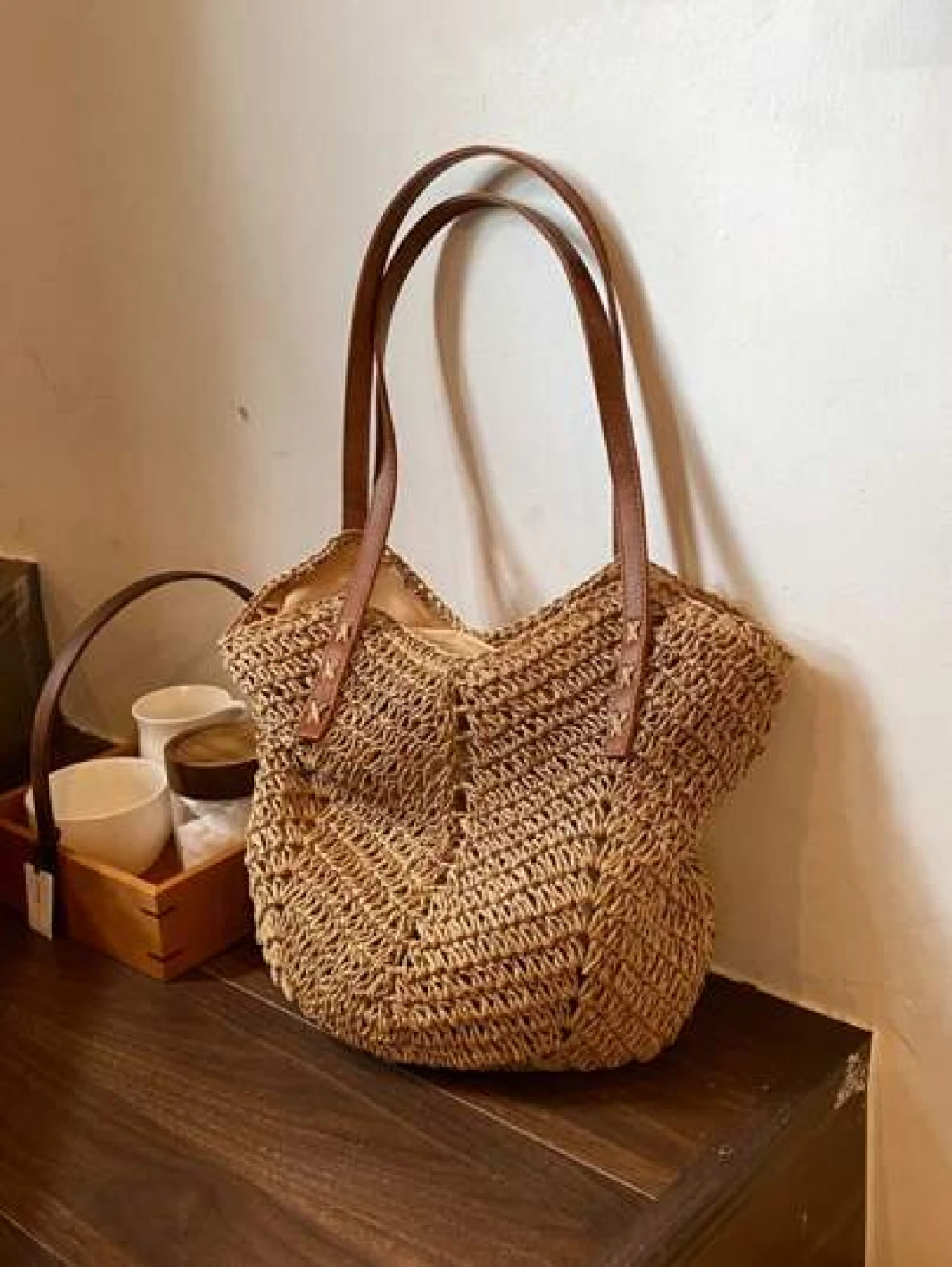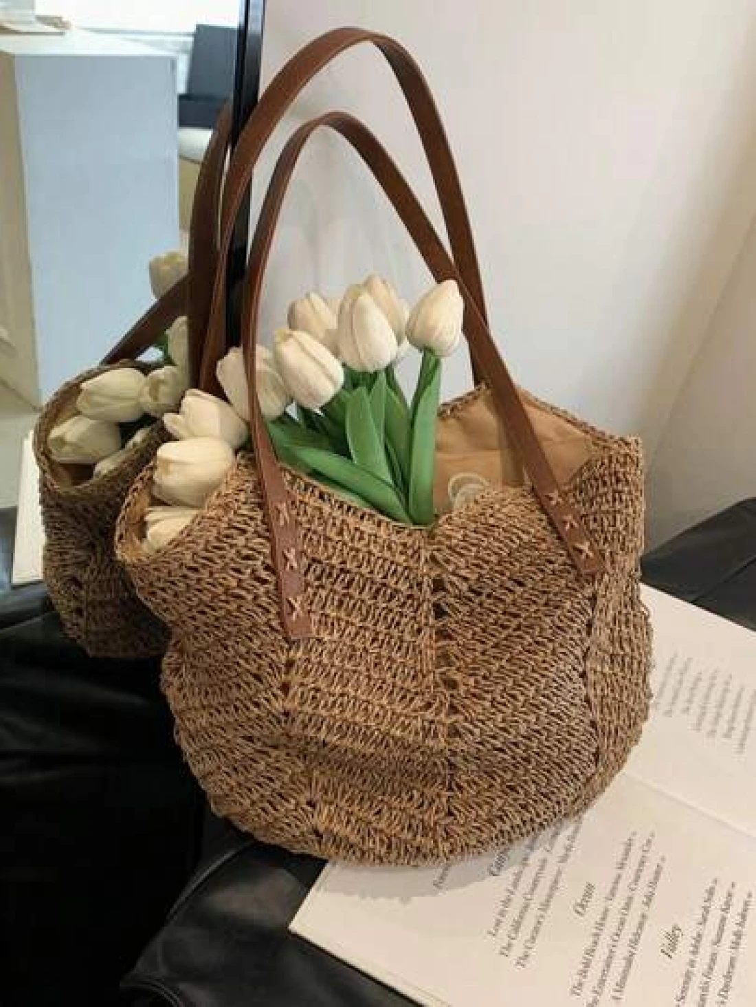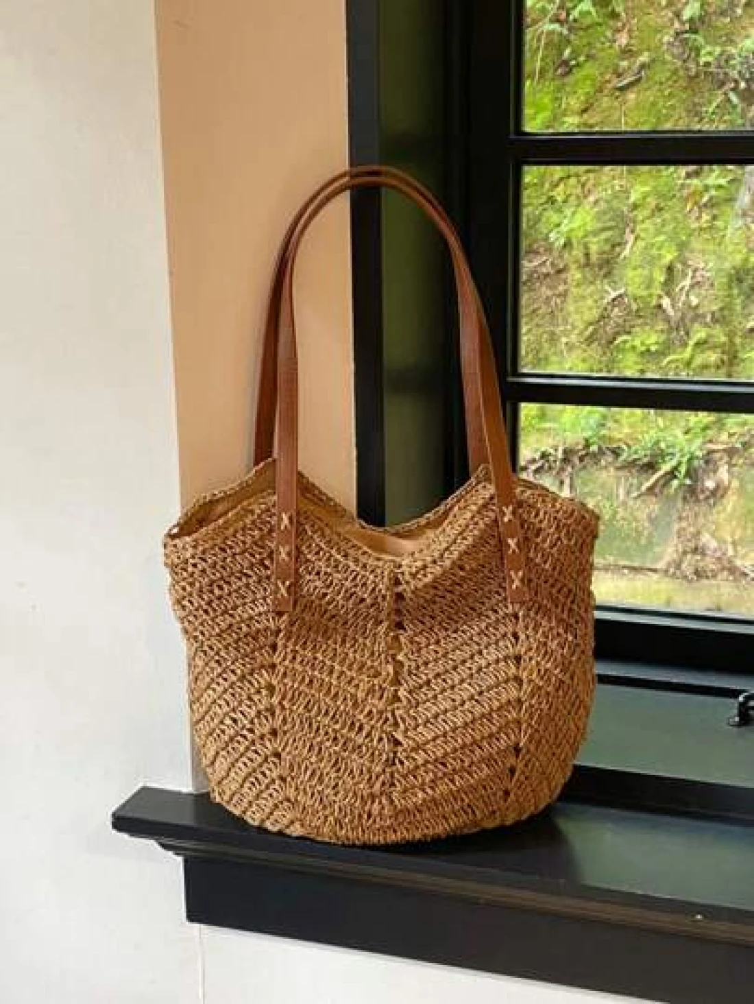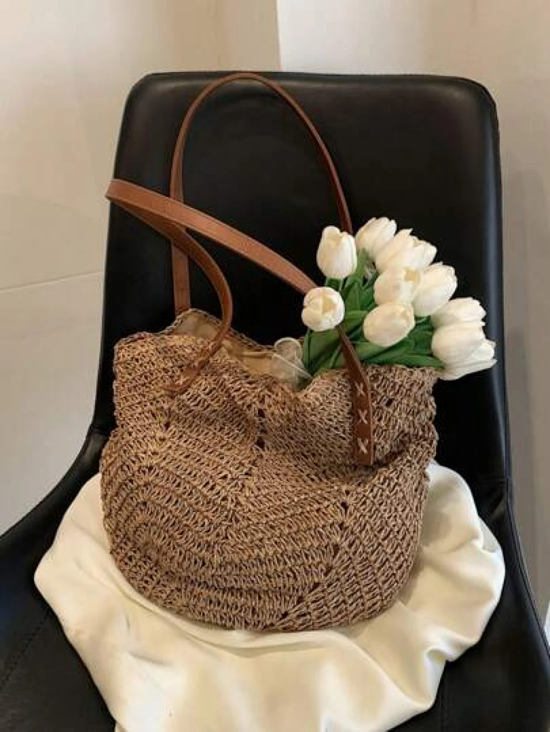 حقيبة قش سعة كبيرة بمقبضين موضة جديدة للنساء، مناسبة للتنقلات اليومية والتسوق والسفر، تصميم خفيف وعملي مثالي