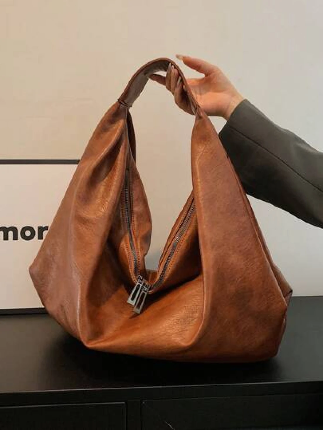KVKY Large Retro Style Hobo Bag Large Capacity PU Tote Bag Women s Casual Shoulder Bag Armpit Bag With Zipper Suitable For Shopping Commuting Work And School Suitable For College Students White Collar
