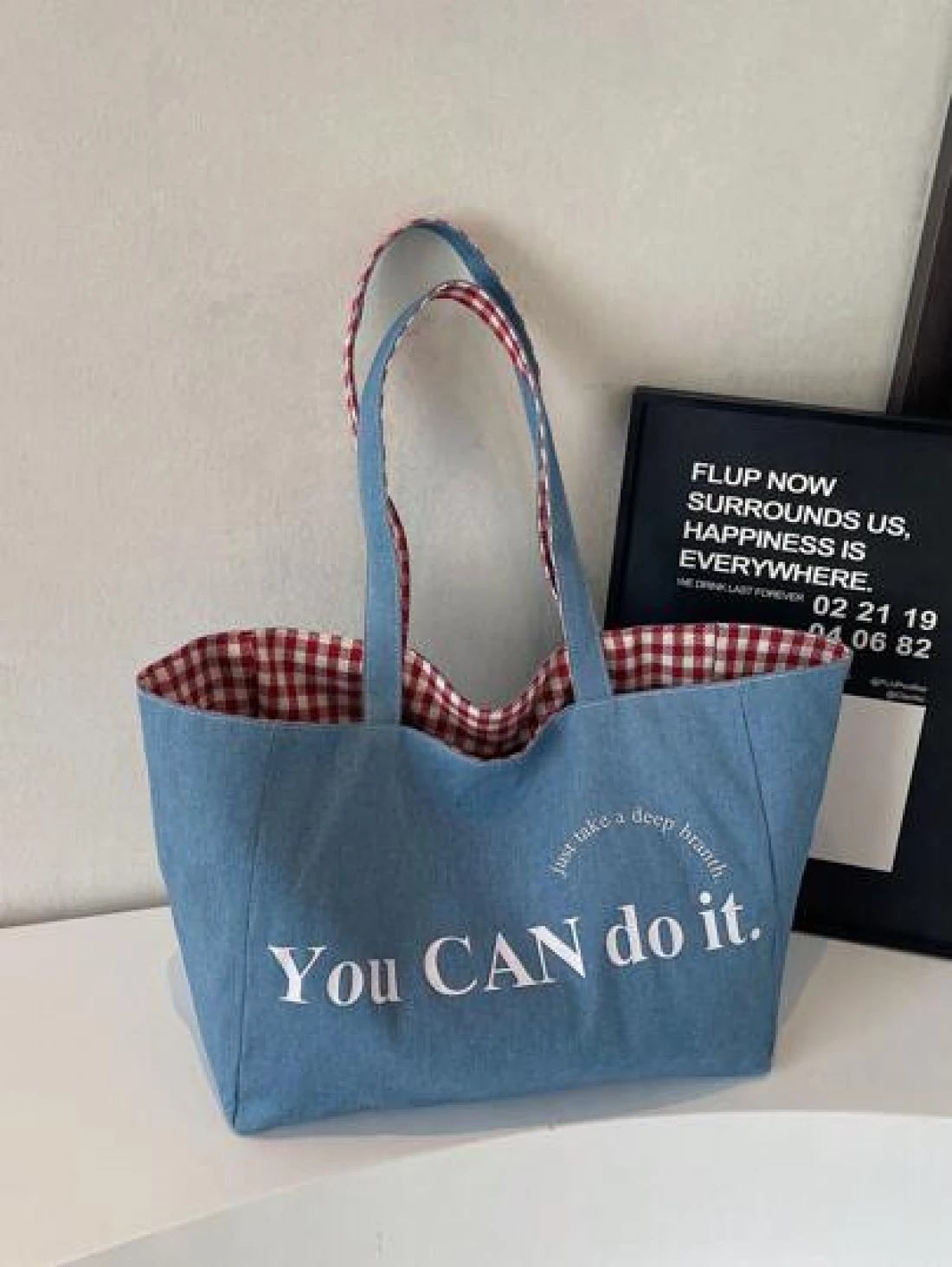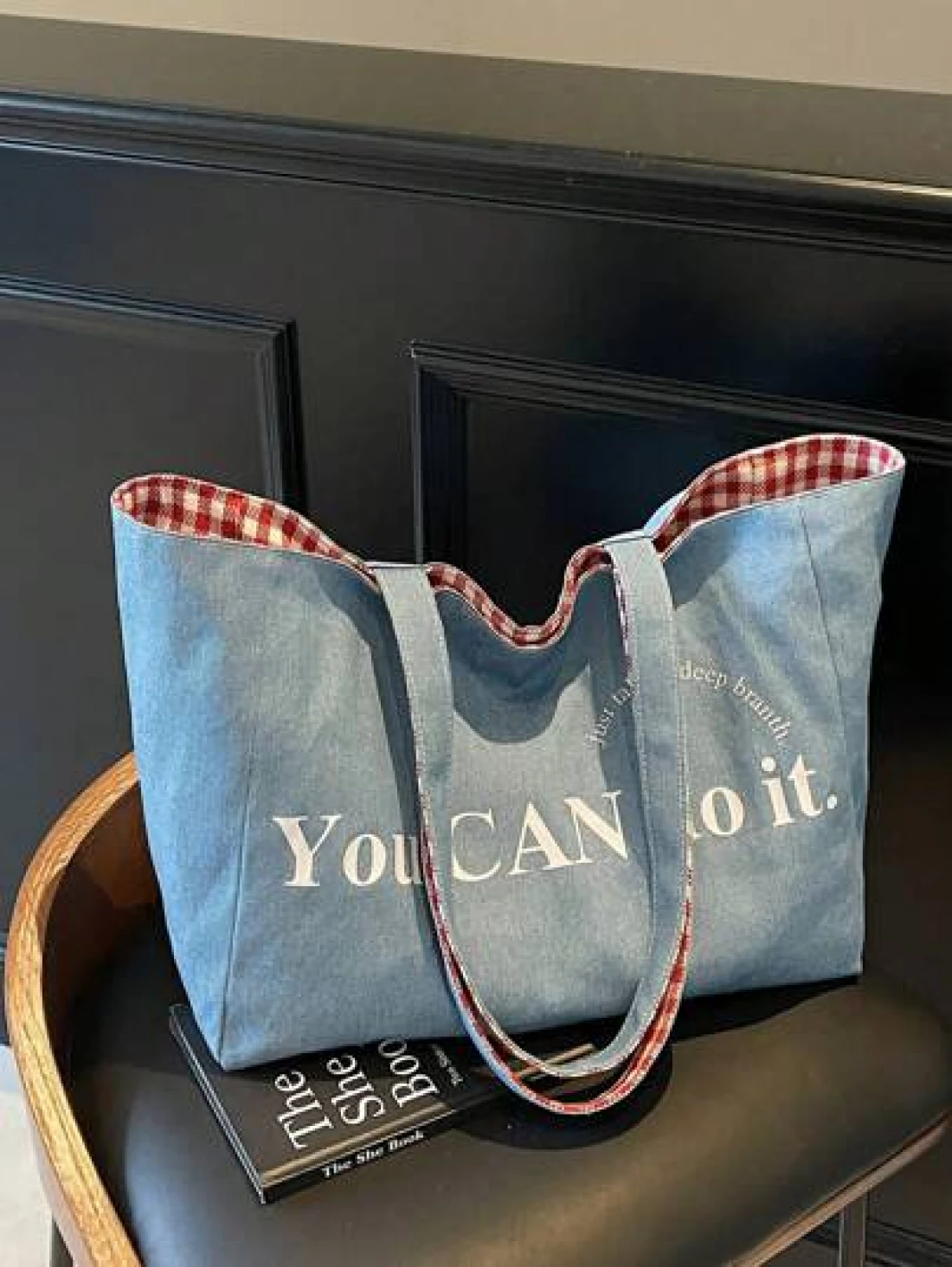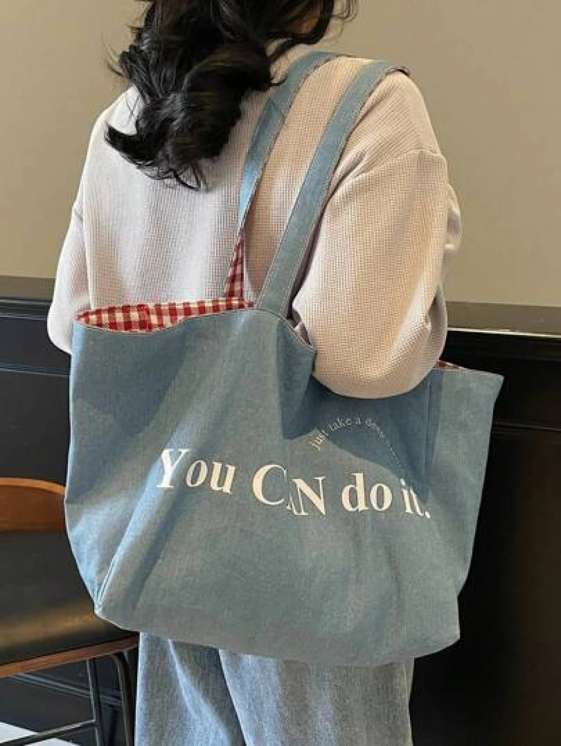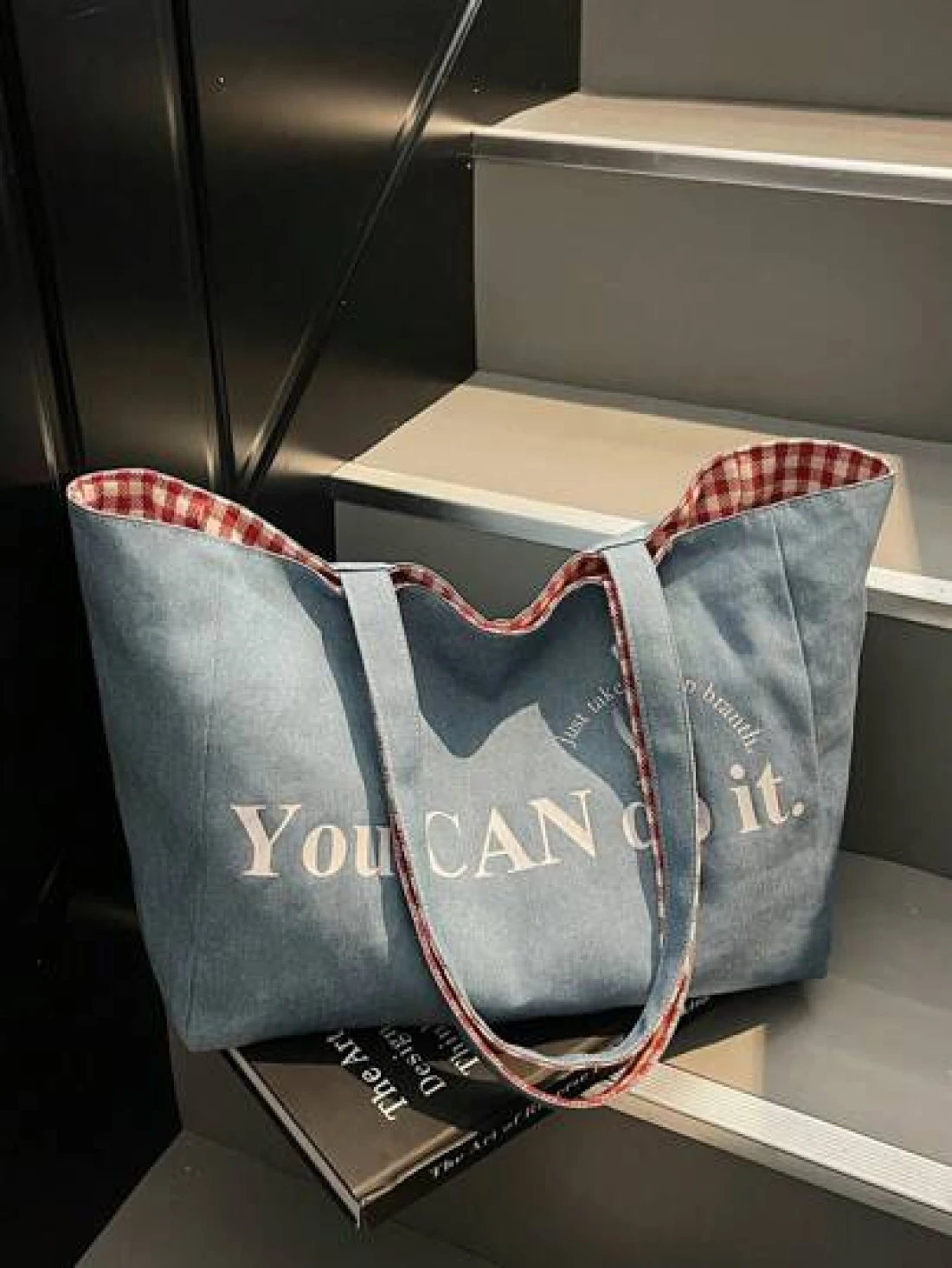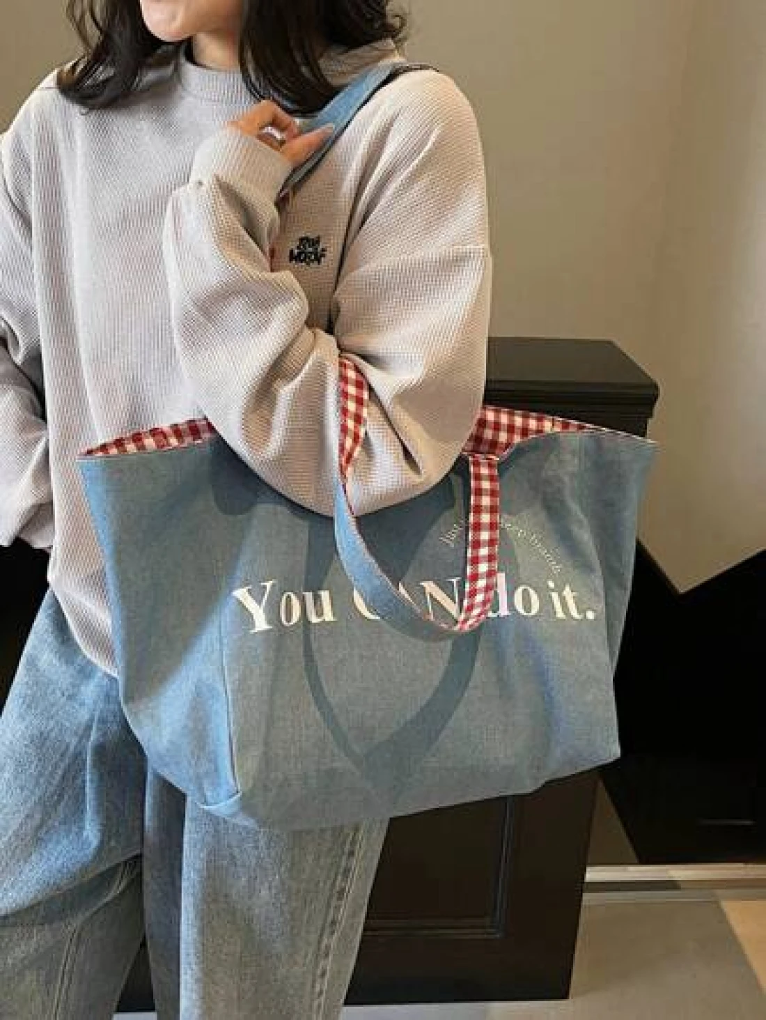 حقائب كانفاس قابلة للعكس للربيع والصيف، حقيبة جينز قماشية زرقاء ، حقيبة ظهر قماشية كبيرة، حقيبة نسائية خفيفة