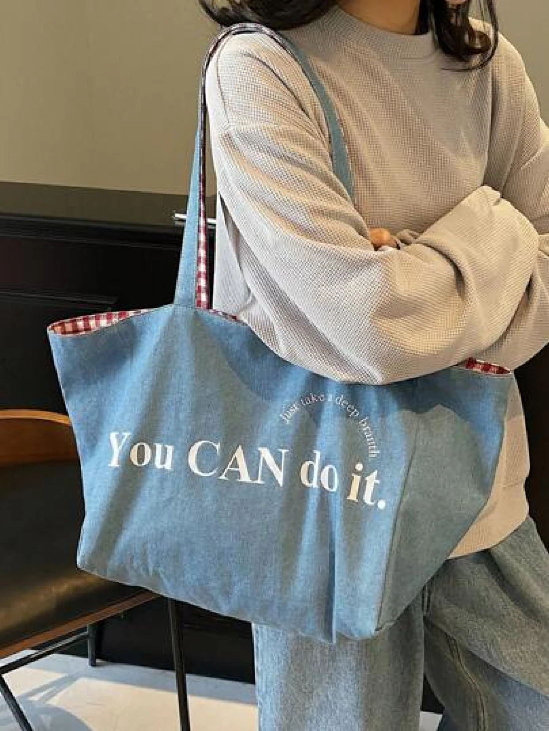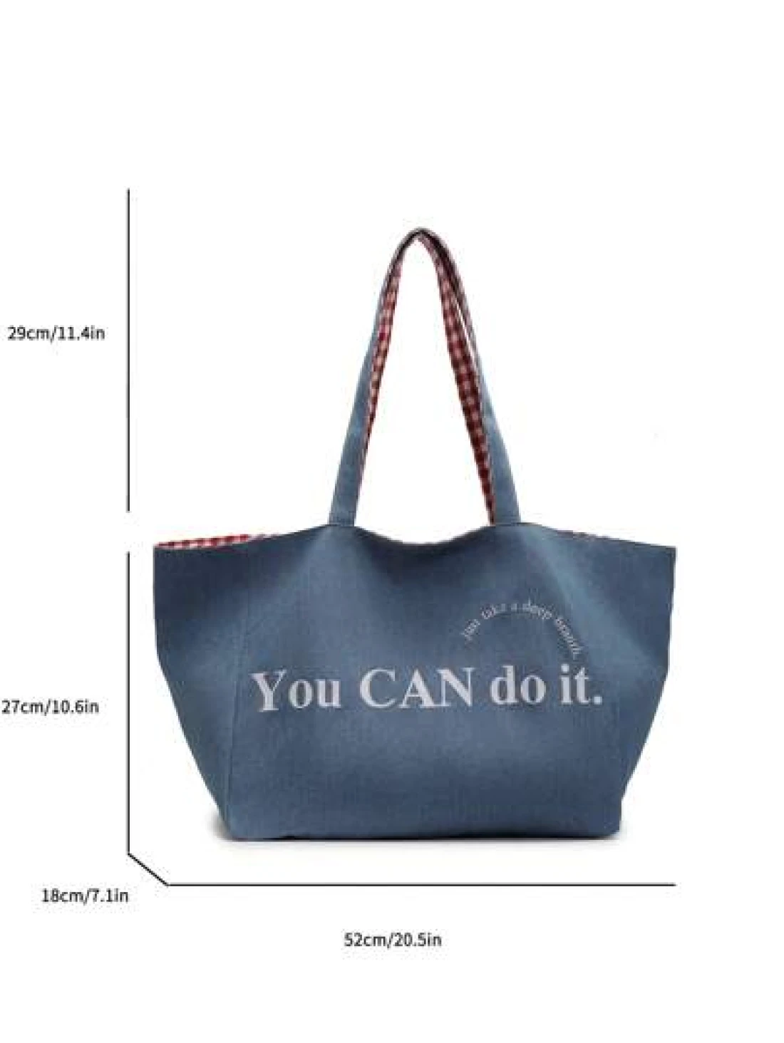 حقائب كانفاس قابلة للعكس للربيع والصيف، حقيبة جينز قماشية زرقاء ، حقيبة ظهر قماشية كبيرة، حقيبة نسائية خفيفة للأعمال الكاجوال والتسوق البسيط