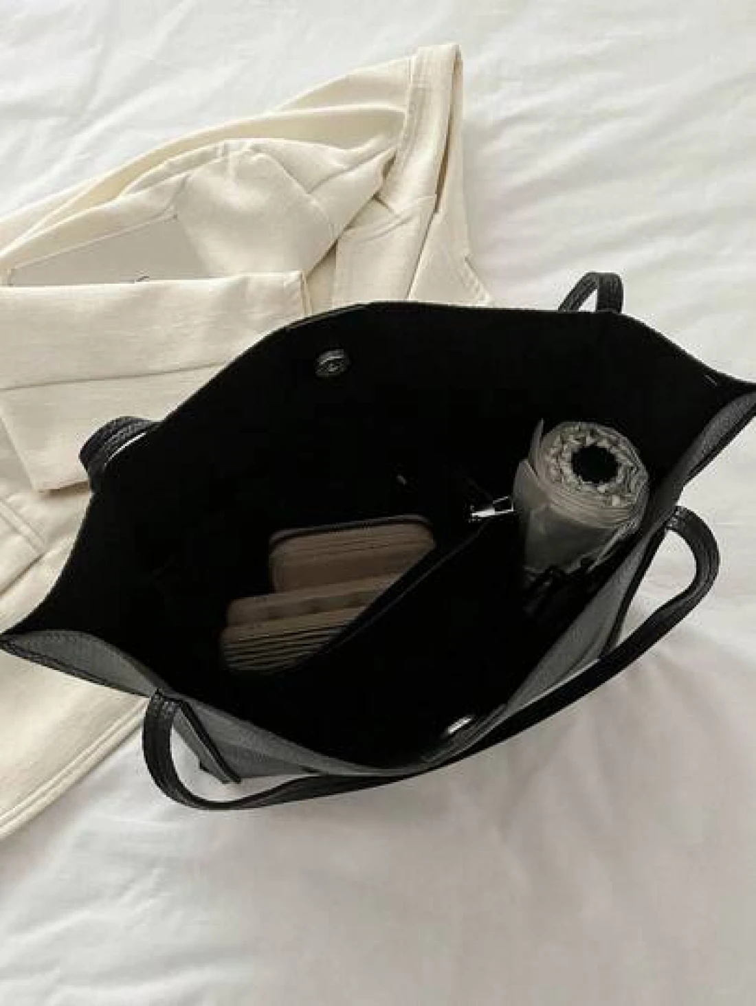 حقيبة كبيرة للأم والابنة بنسيج ليتشي، حقيبة كتف ذات سعة كبيرة