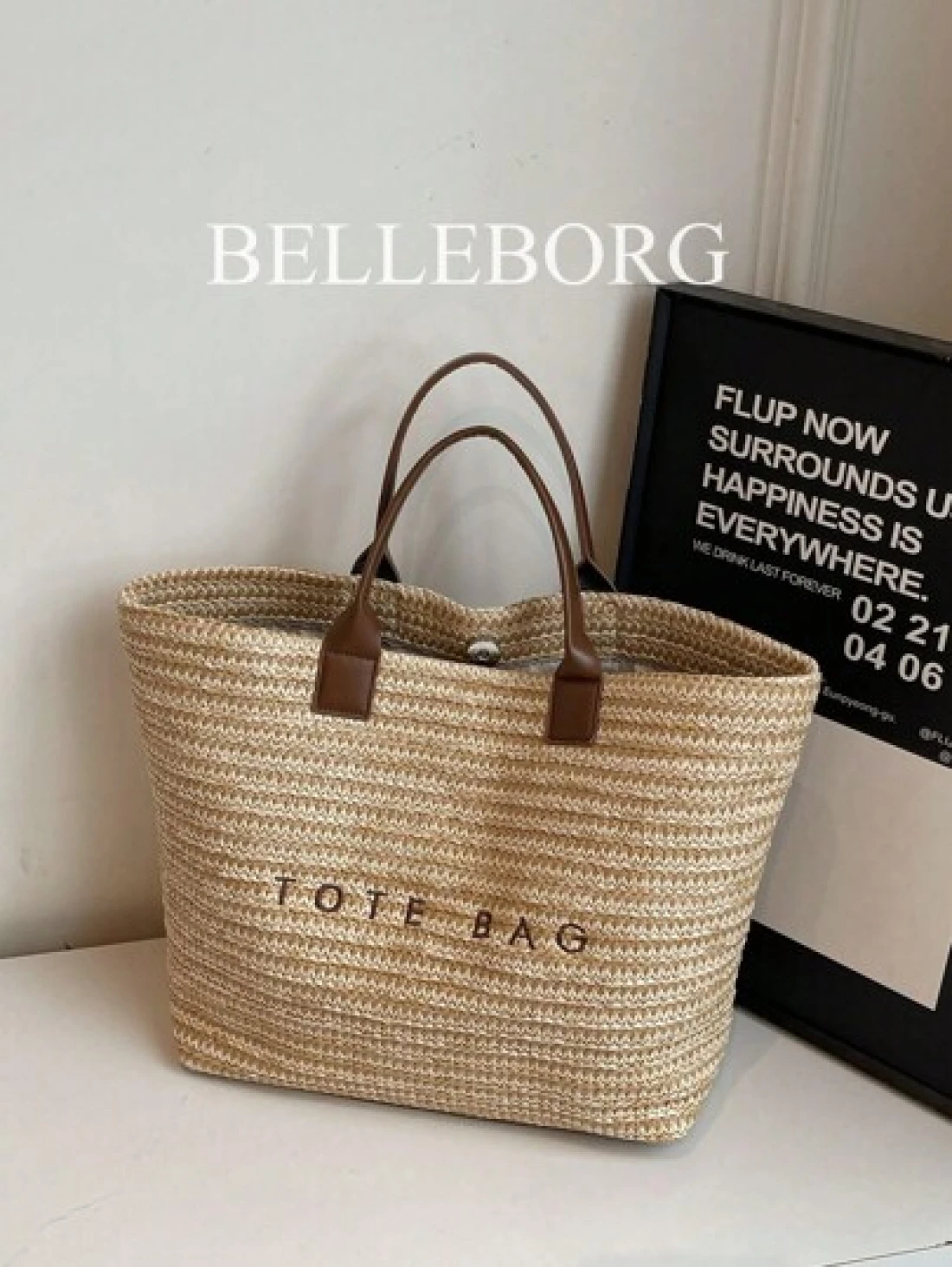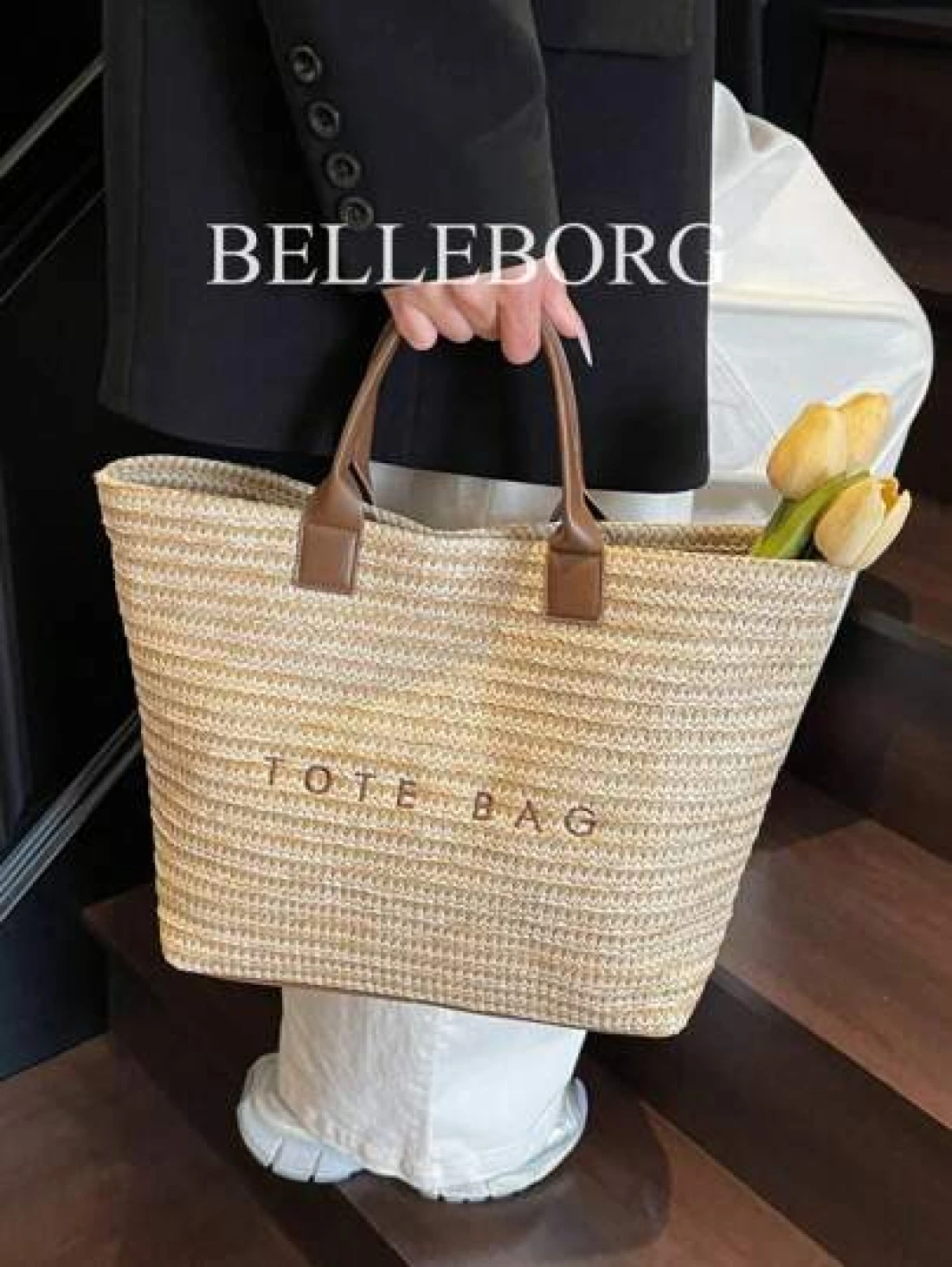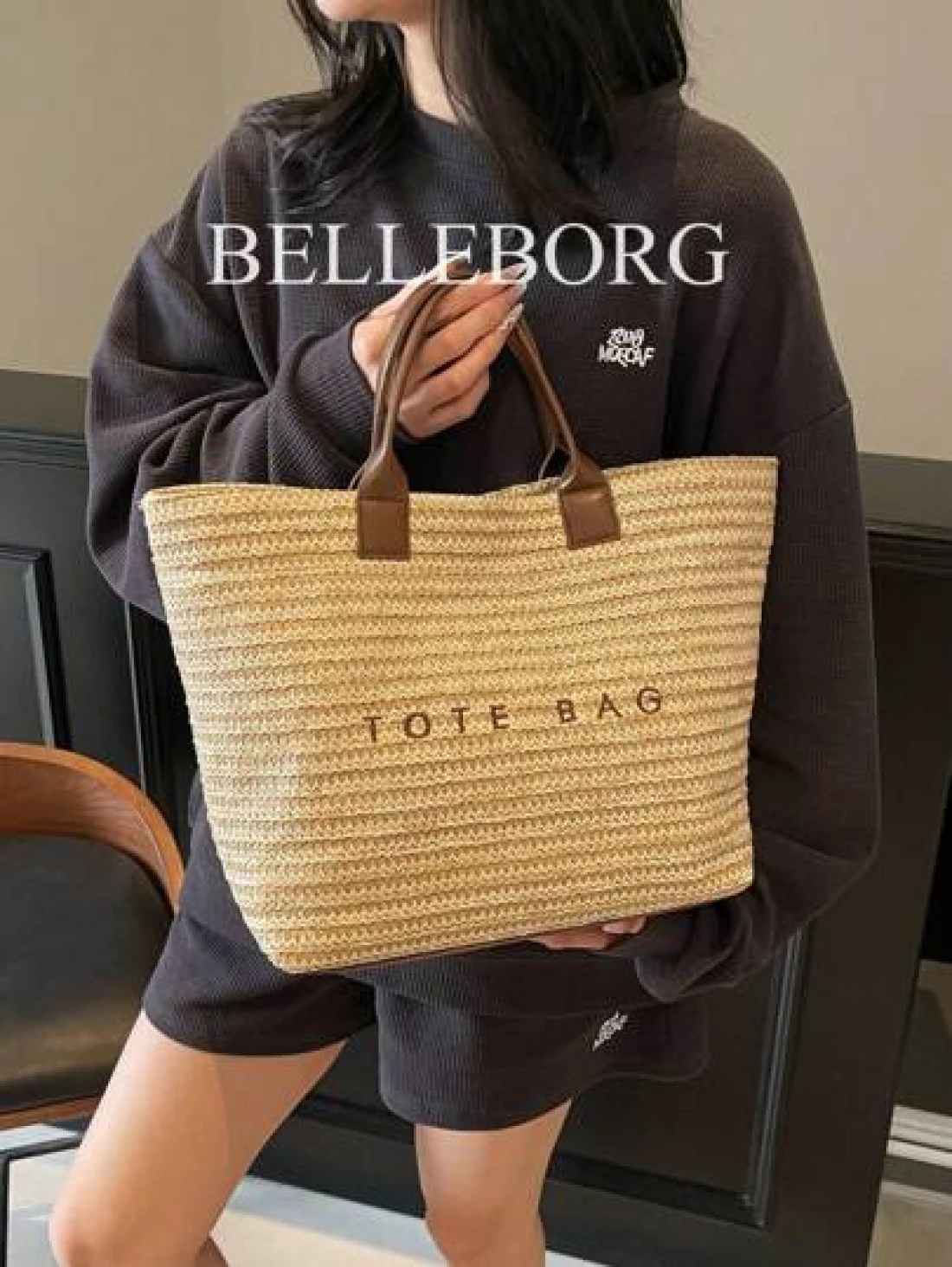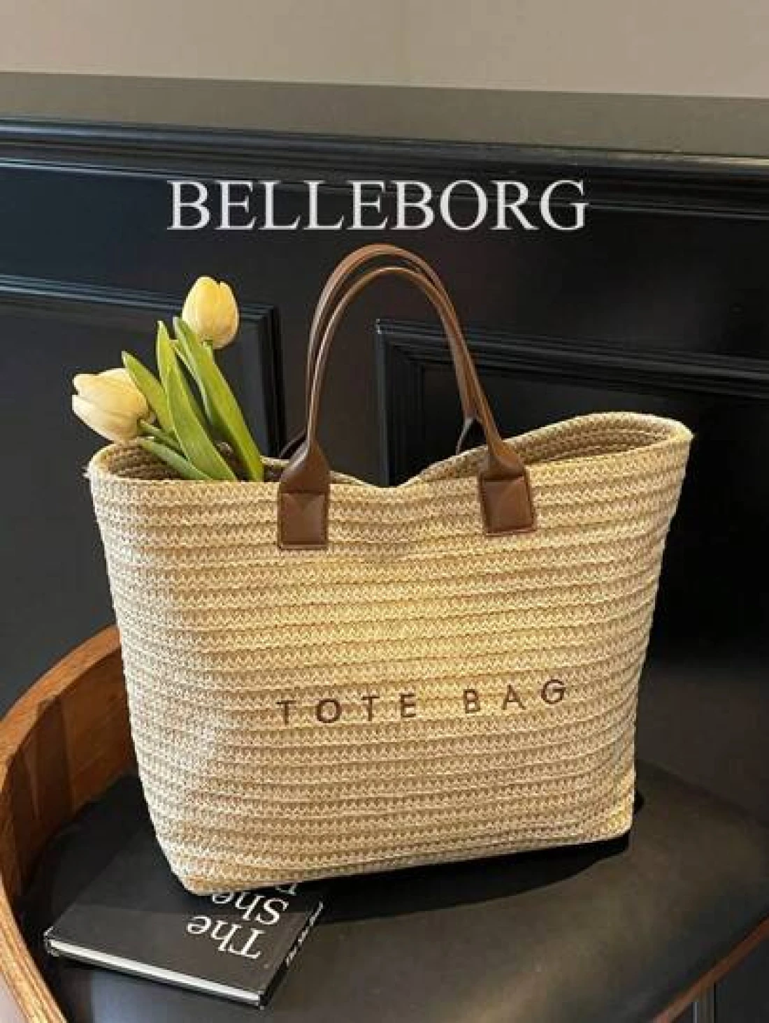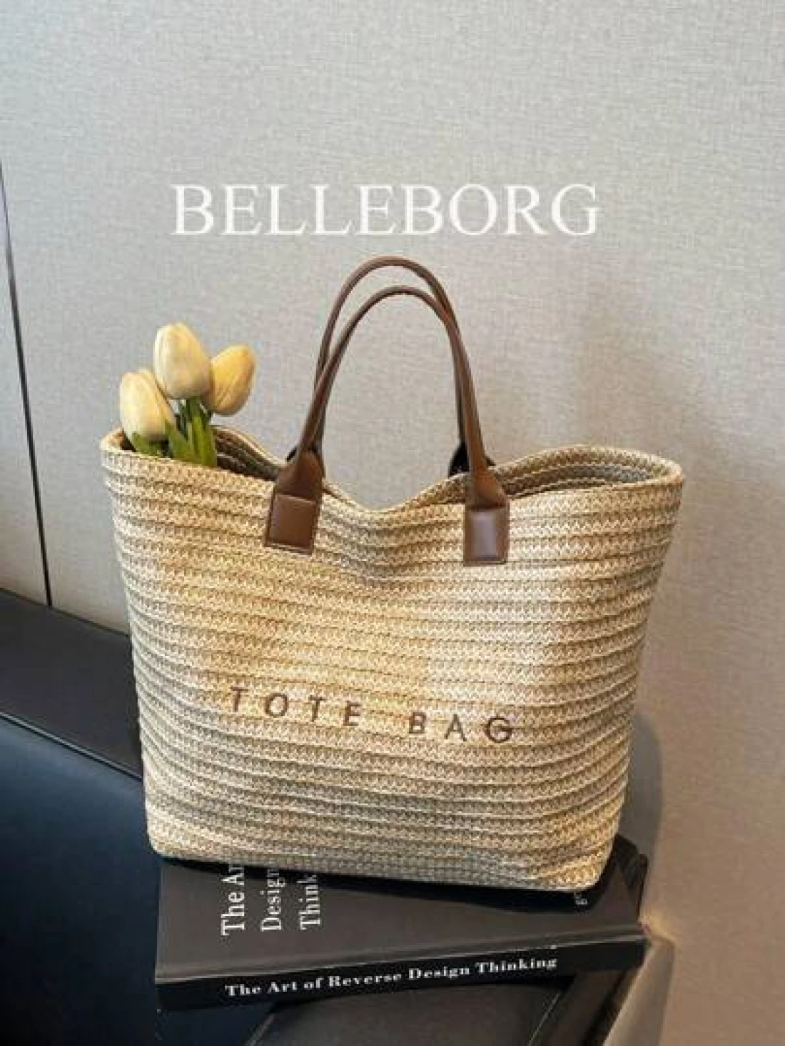 حقيبة نسائية كبيرة السعة ذات تصميم بسيط وأنيق من القش مناسبة للعطلات والاستخدام اليومي