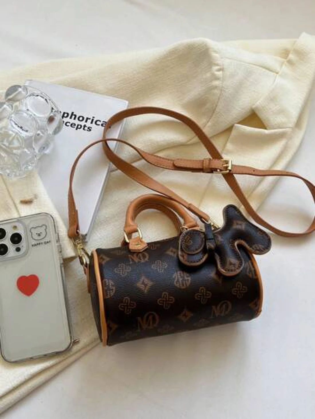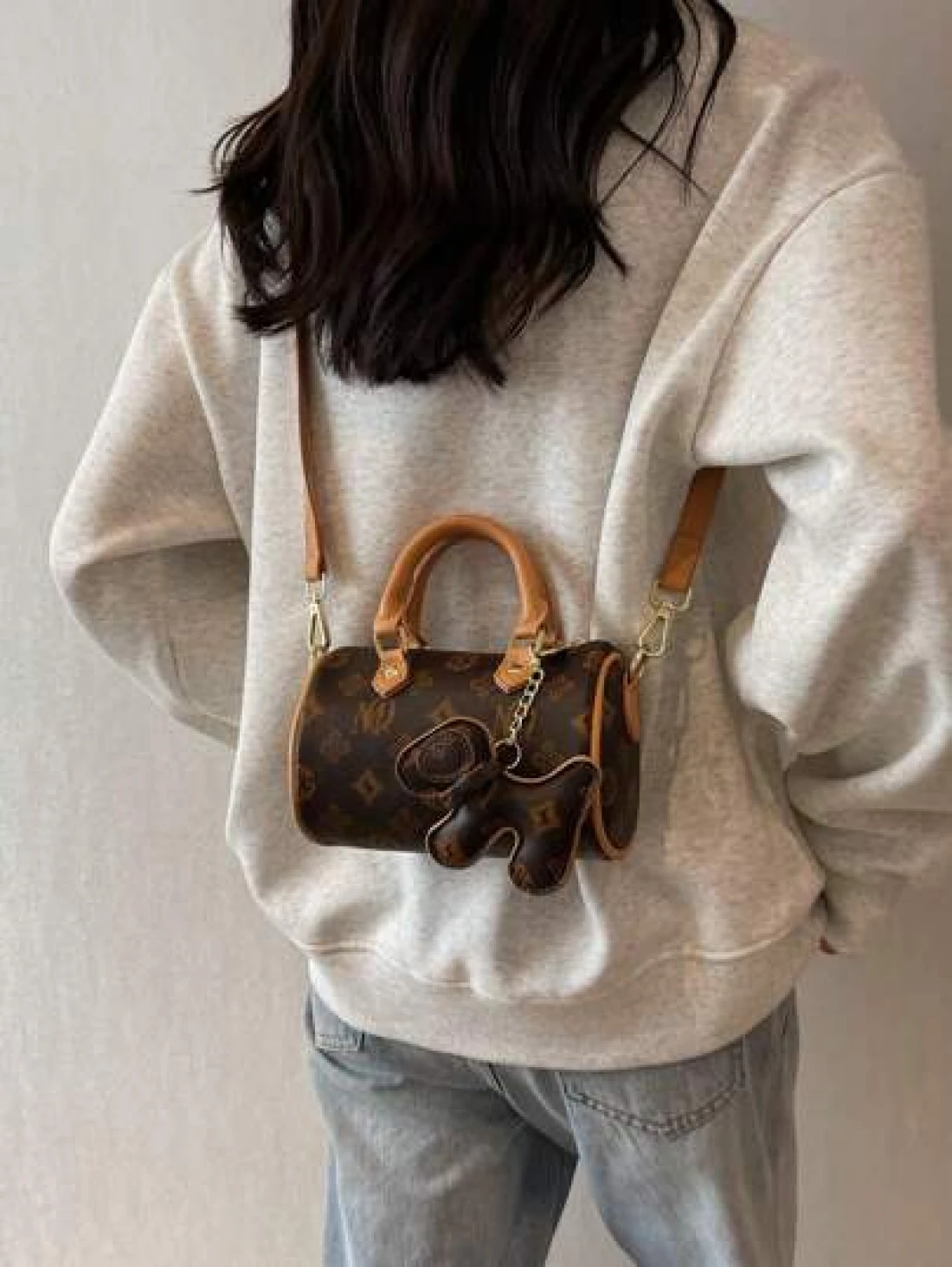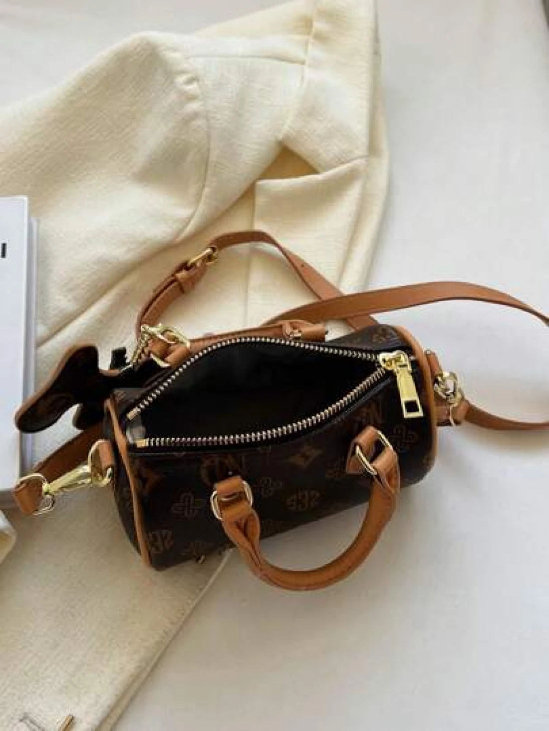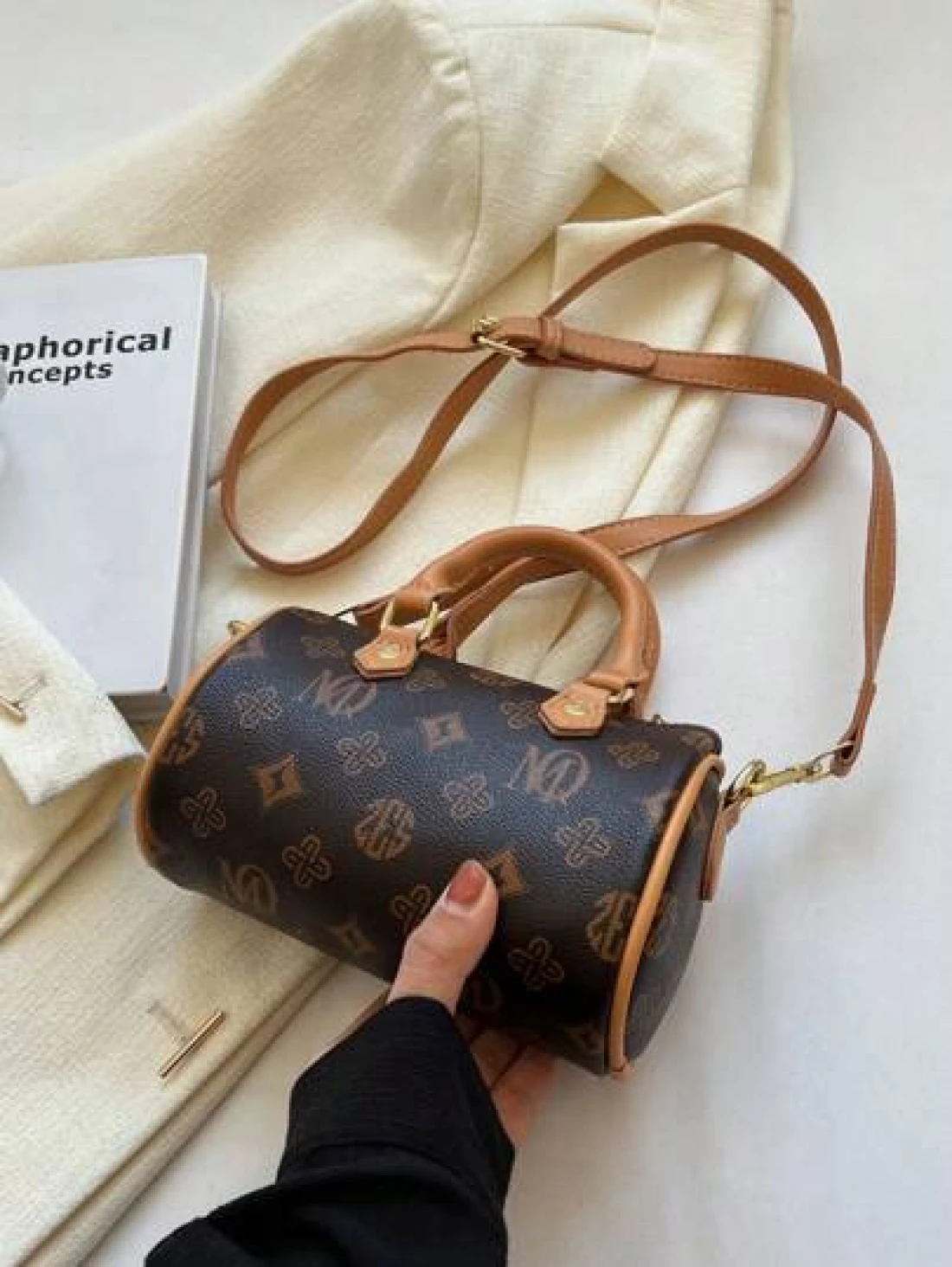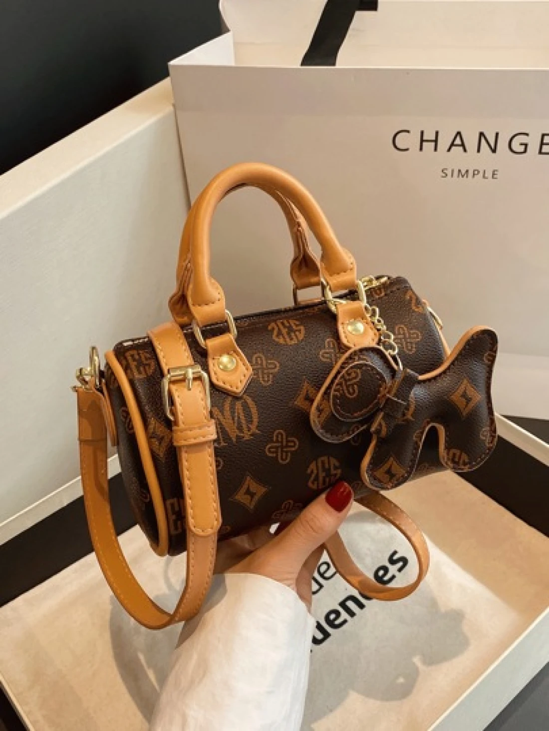 في عام 2024، حقيبة الوسادة المتنقلة ذات التصميم المطبوع بنمط الحرف والتصميم المتباين، ذات المقبض المزدوج، والم